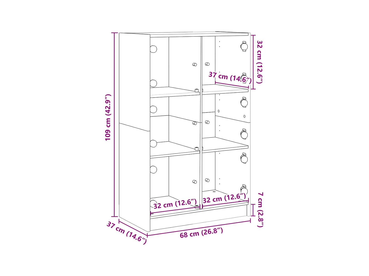 Credenza con Ante Grigio Cemento 68x37x109 cm Legno Multistrato