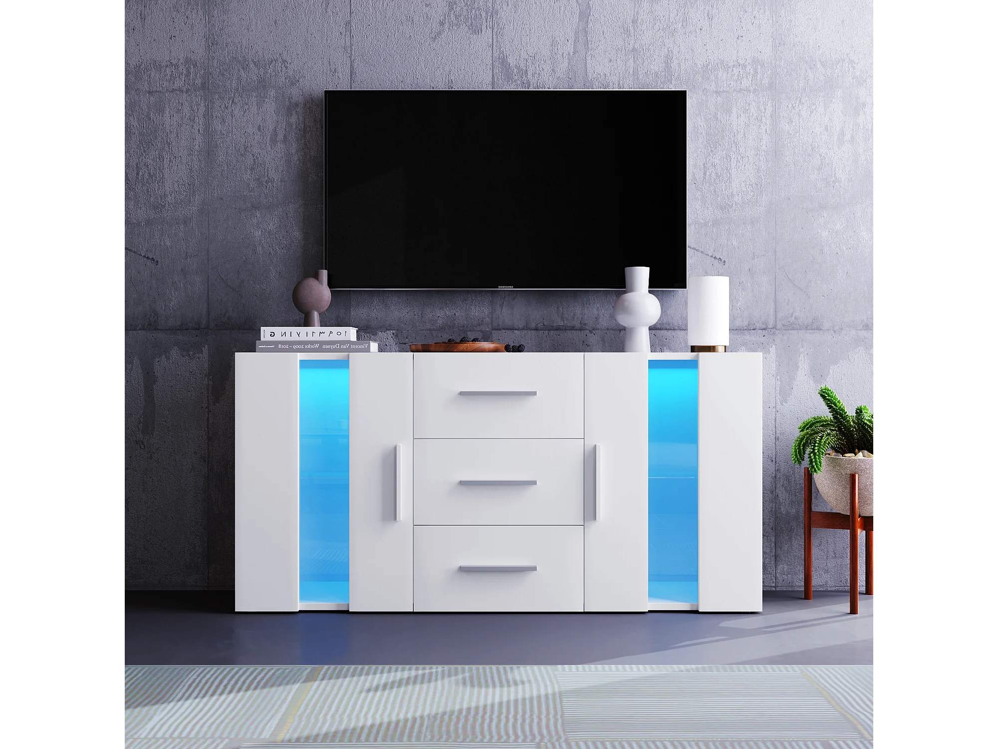 Credenza con LED, 2 ante e 3 cassetti - Legno MDF - Bianco