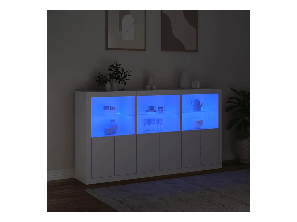 Credenze con Luci LED 3 pz Bianche in Legno Multistrato