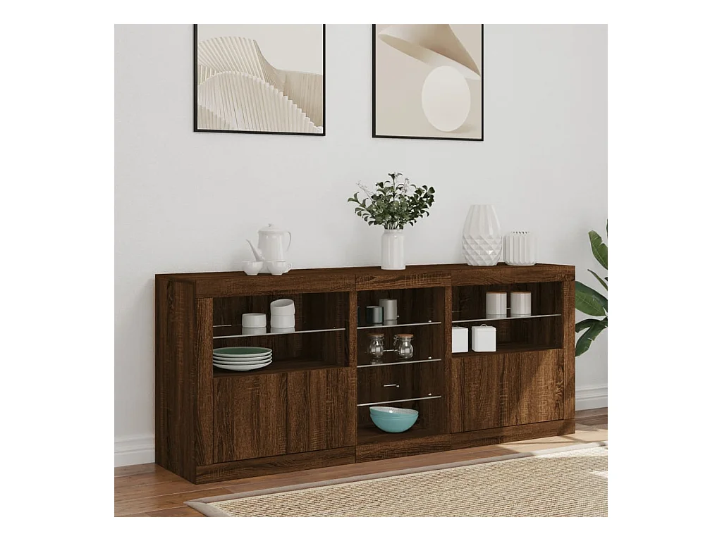Credenza con Luci LED Rovere Marrone 283x37x67 cm