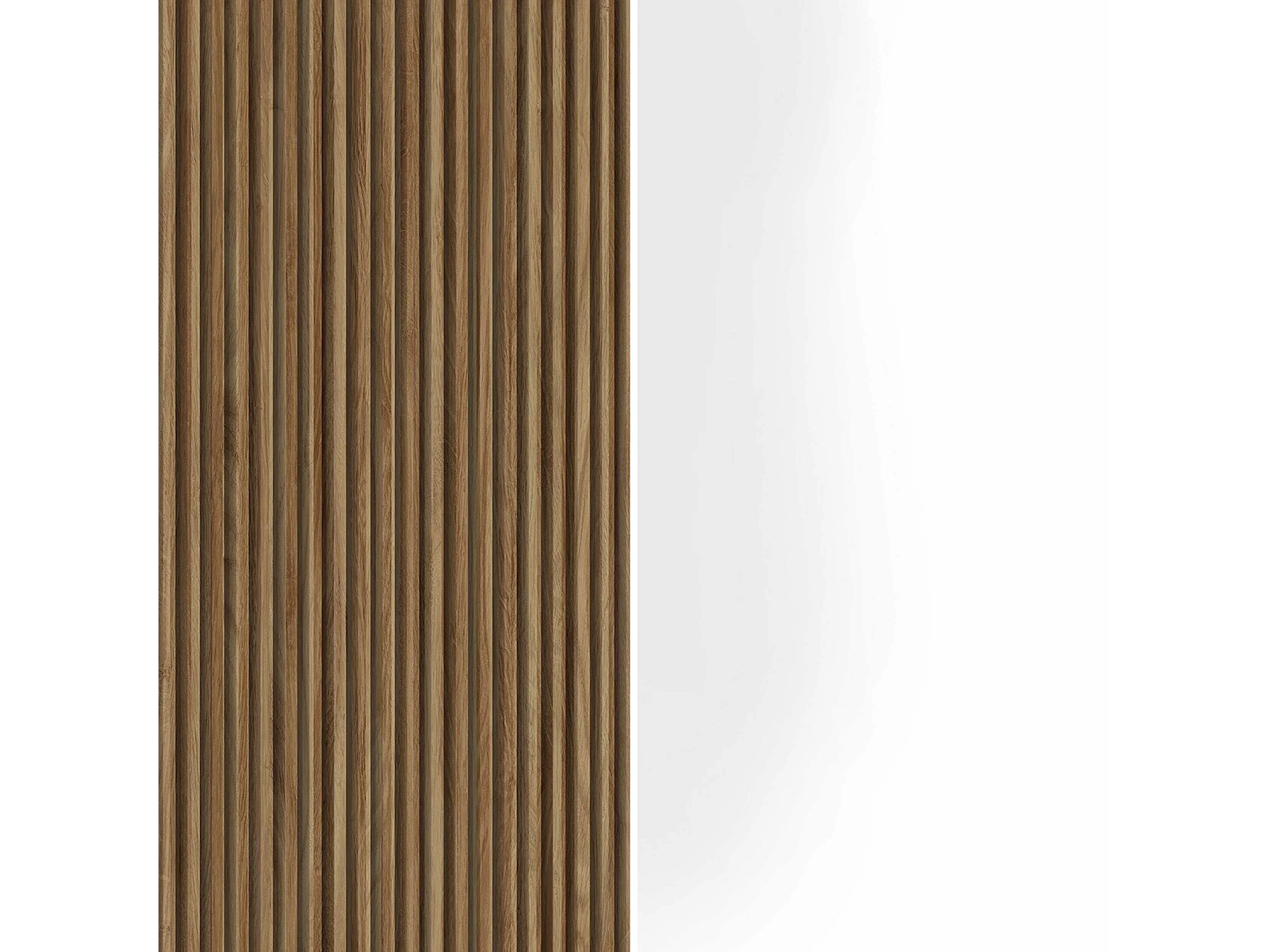 Credenza Coste a 2 ante e 3 cassetti bianco opaco e legno chiaro 180x43x86 cm