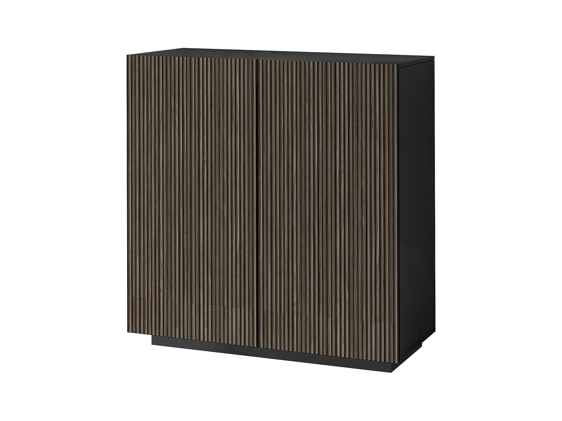 Credenza Coste a 2 ante effetto cannetè antracite opaco e legno scuro 120x43x126 cm