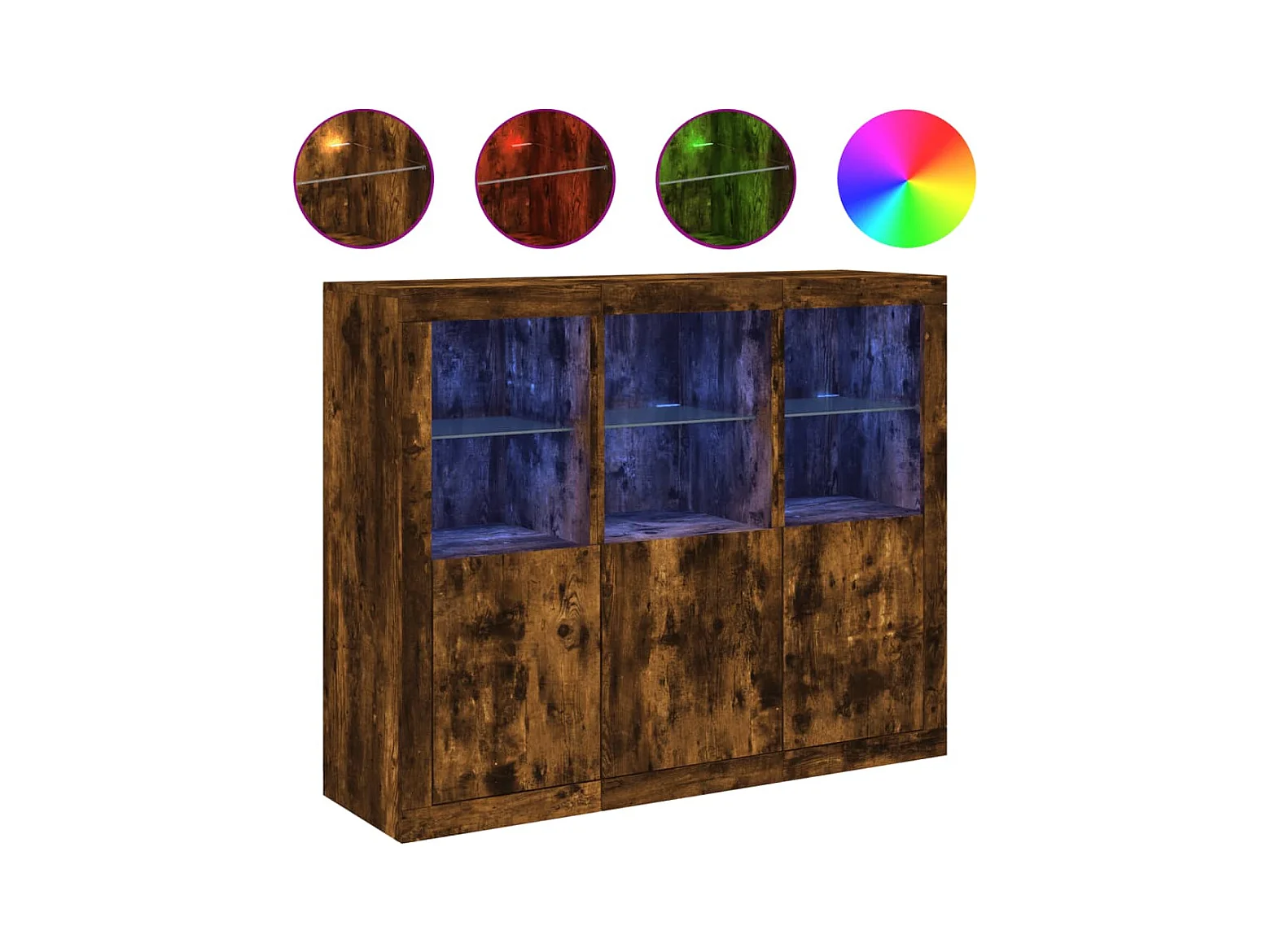 Credenza credenza cassettiera mobile contenitore organizer cucina soggiorno soggiorno con luci a LED 3 pezzi Sonoma MDF marrone 02_0037216