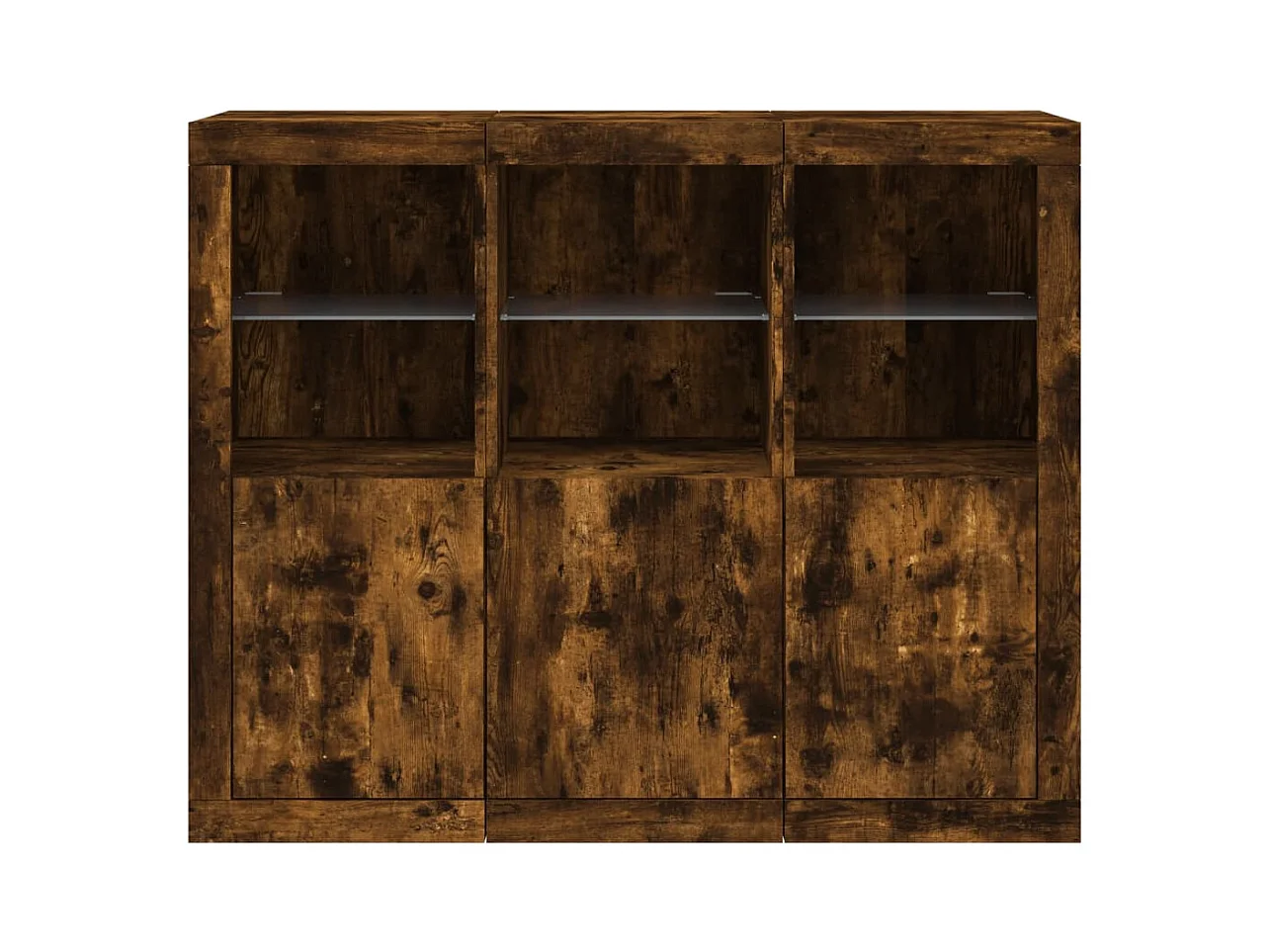 Credenza Credenza Comò Armadietto Portaoggetti Organizer Cucina Soggiorno Soggiorno con luci a LED 3 pezzi Legno composito marrone 02_0037211