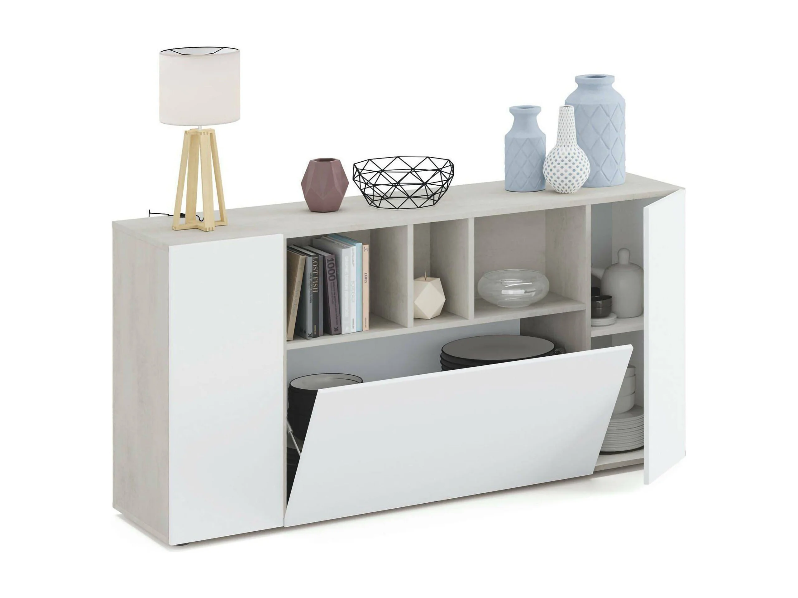 Credenza Crisantemo, 2 Ripiani, 41x150x76h cm Bianco, Madia