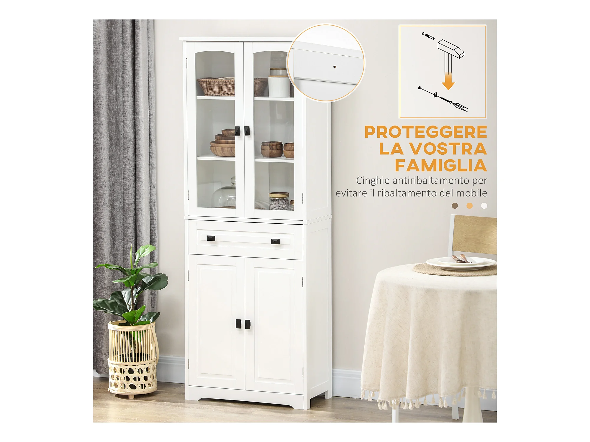 Credenza cucina alta con 2 armadietti e cassetto 60x30x160cm bianco