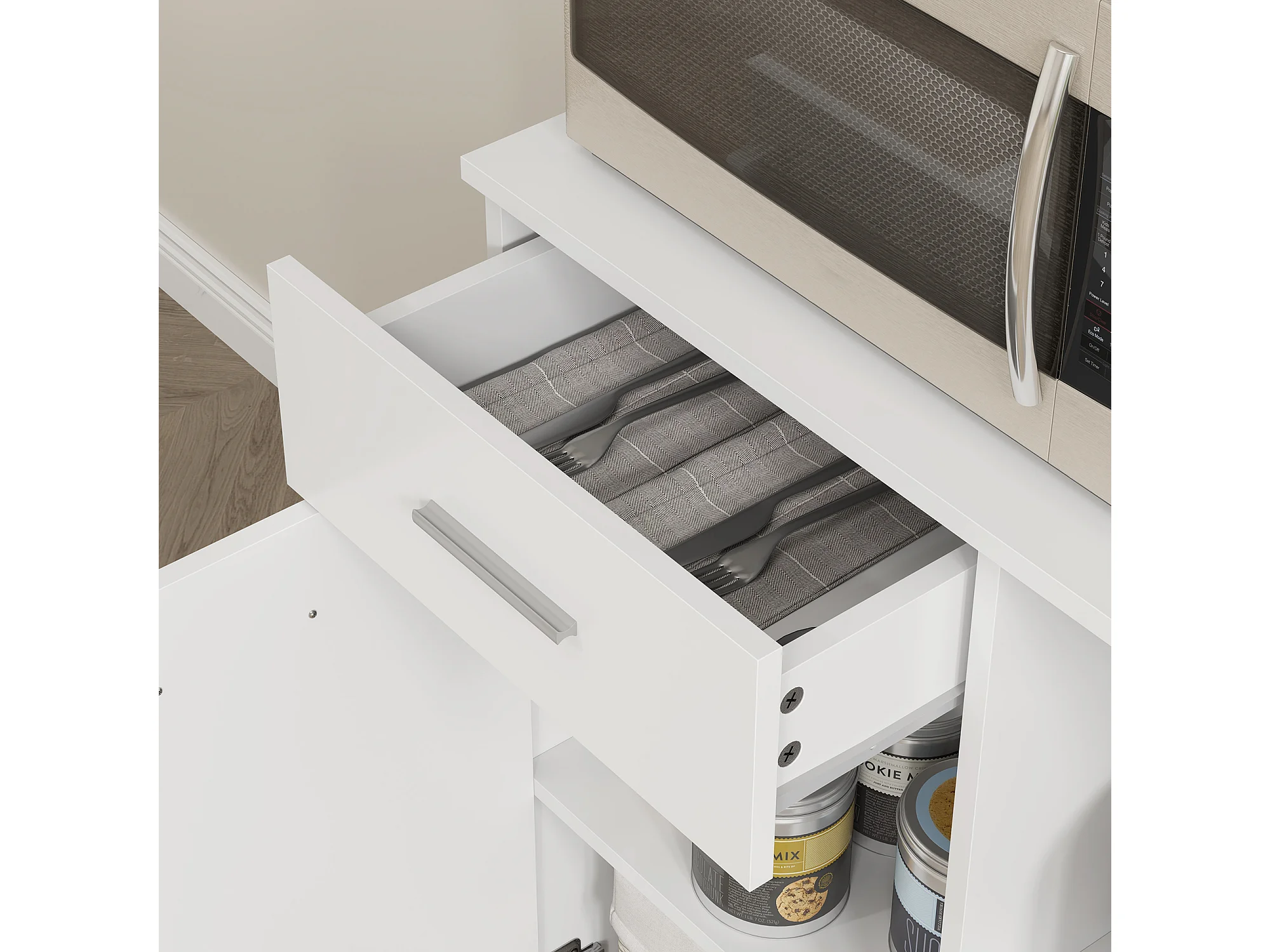 Credenza cucina alta, mobile dispensa con foro passacavi e piano portamicroonde