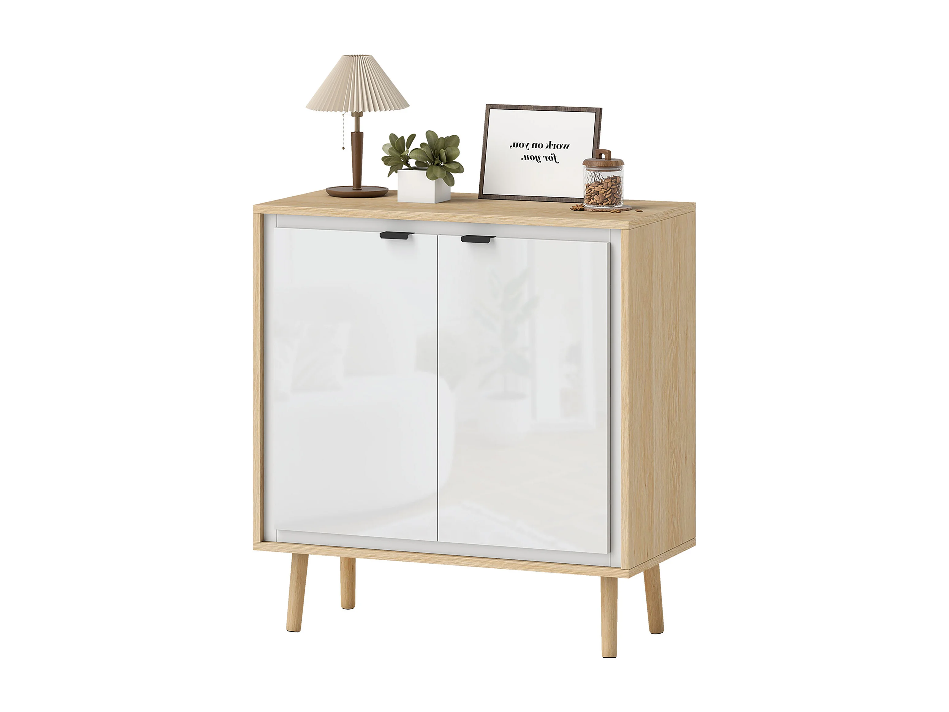 Credenza moderna con 2 ante trasparenti mobile multiuso a 2 ripiani per cucina