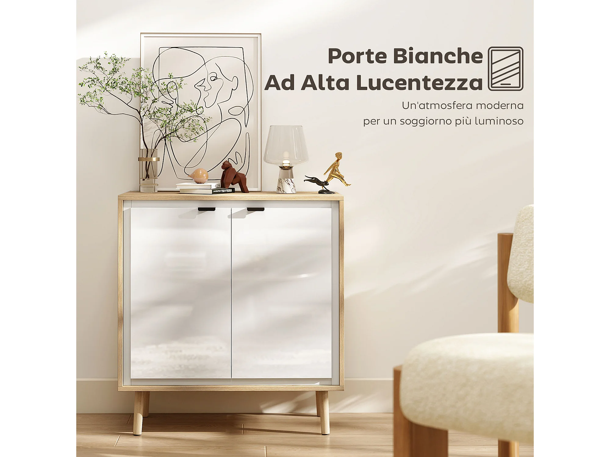 Credenza cucina con 2 ante mobile cucina moderno con ripiano regolabile e piedi in legno