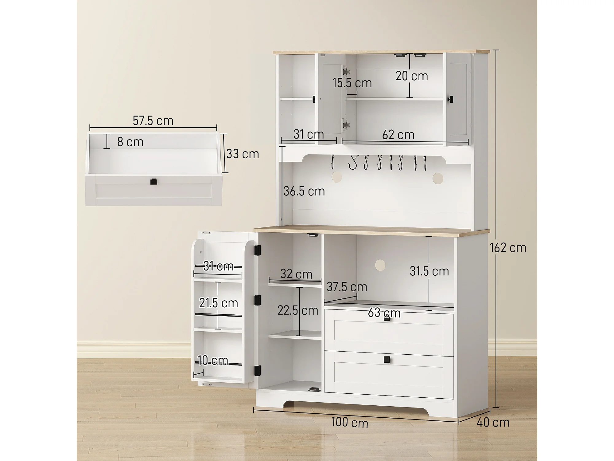 Credenza cucina con 3 armadietti e 2 cassetti alta 162 cm bianco