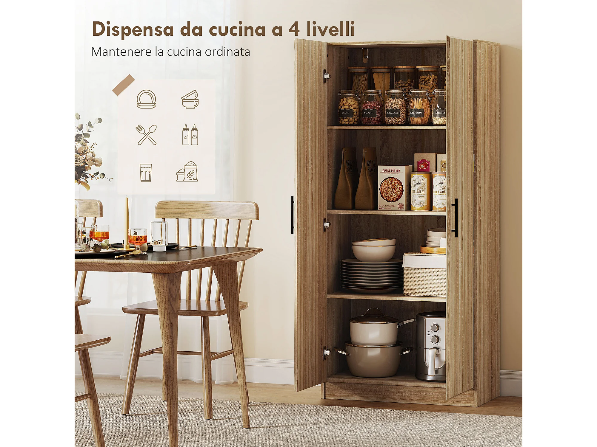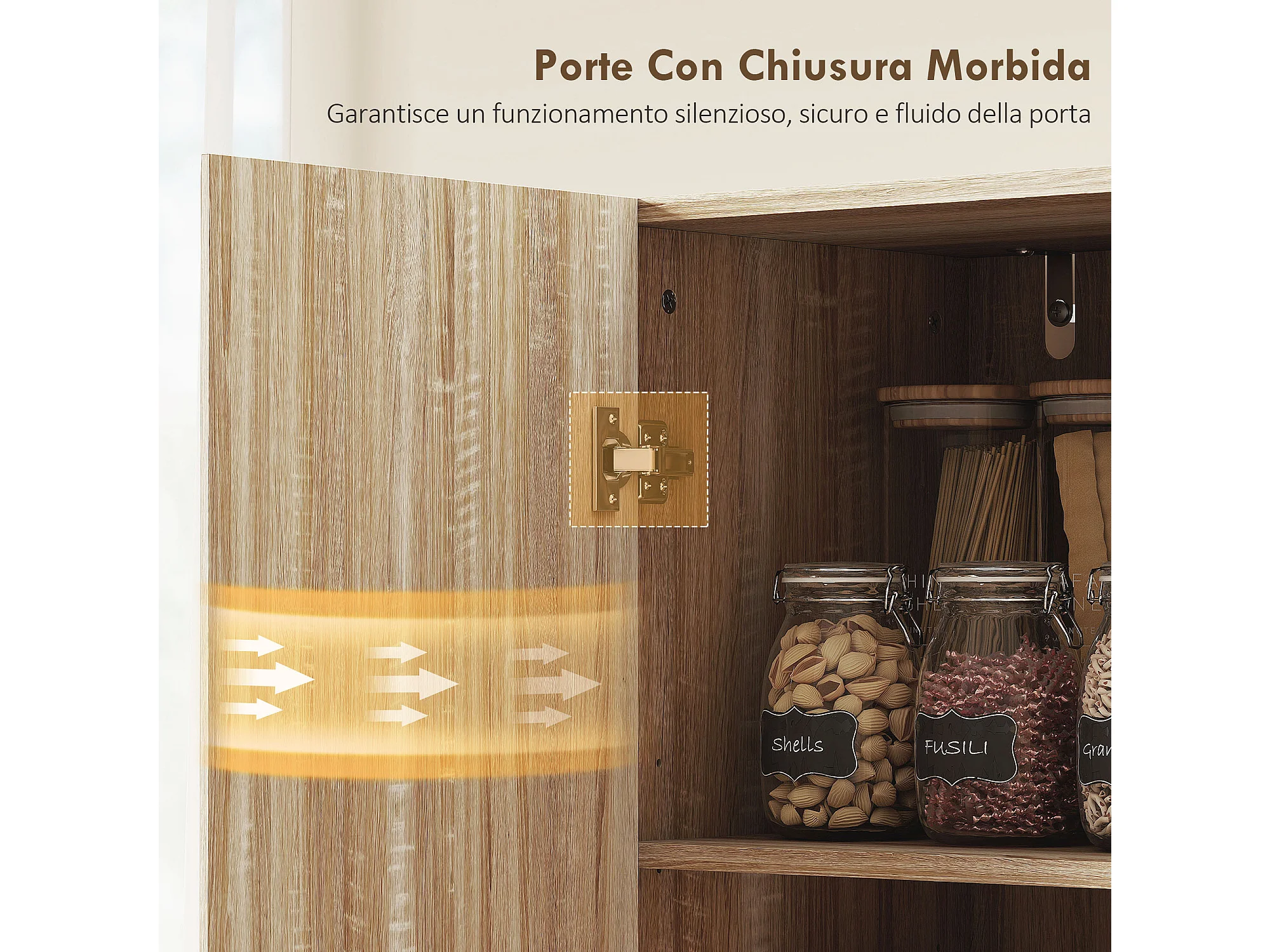 Credenza cucina con ante a chiusura ammortizzata dispensa cucina con 2 ripiani regolabili