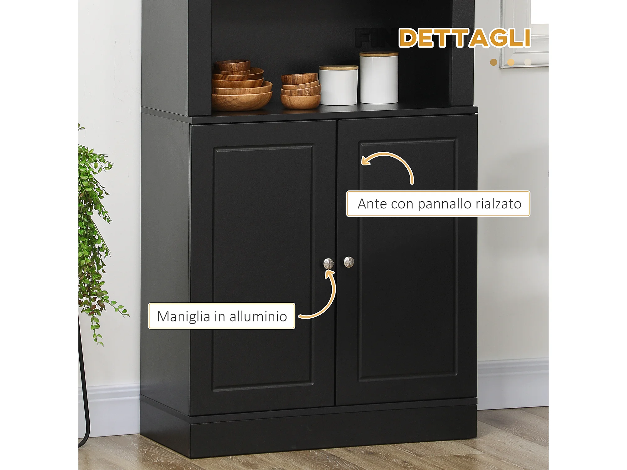 Credenza cucina in legno con ripiani e armadietto 2 ante nero