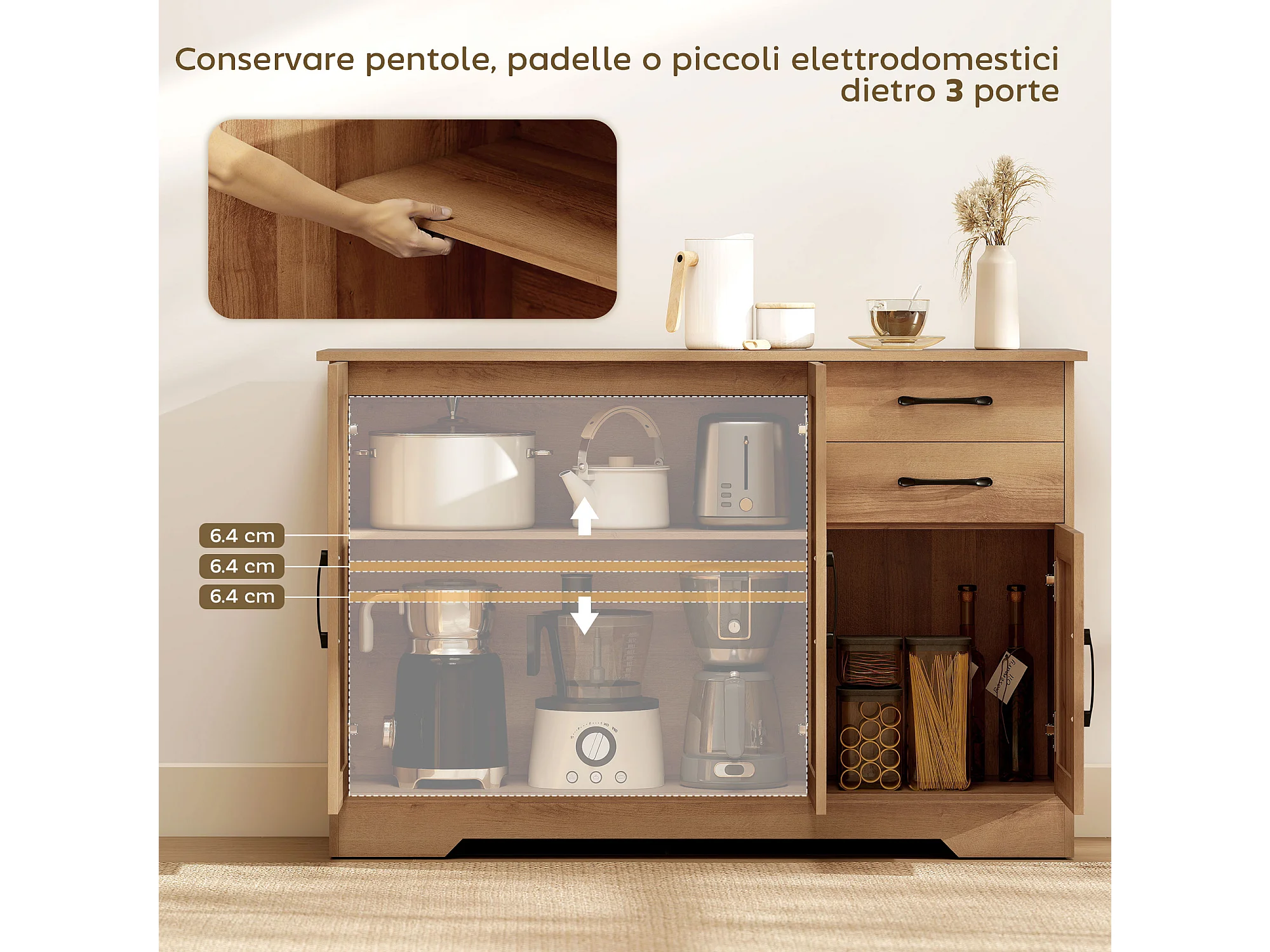 Credenza moderna in legno mobiletto multiuso con ripiani per soggiorno