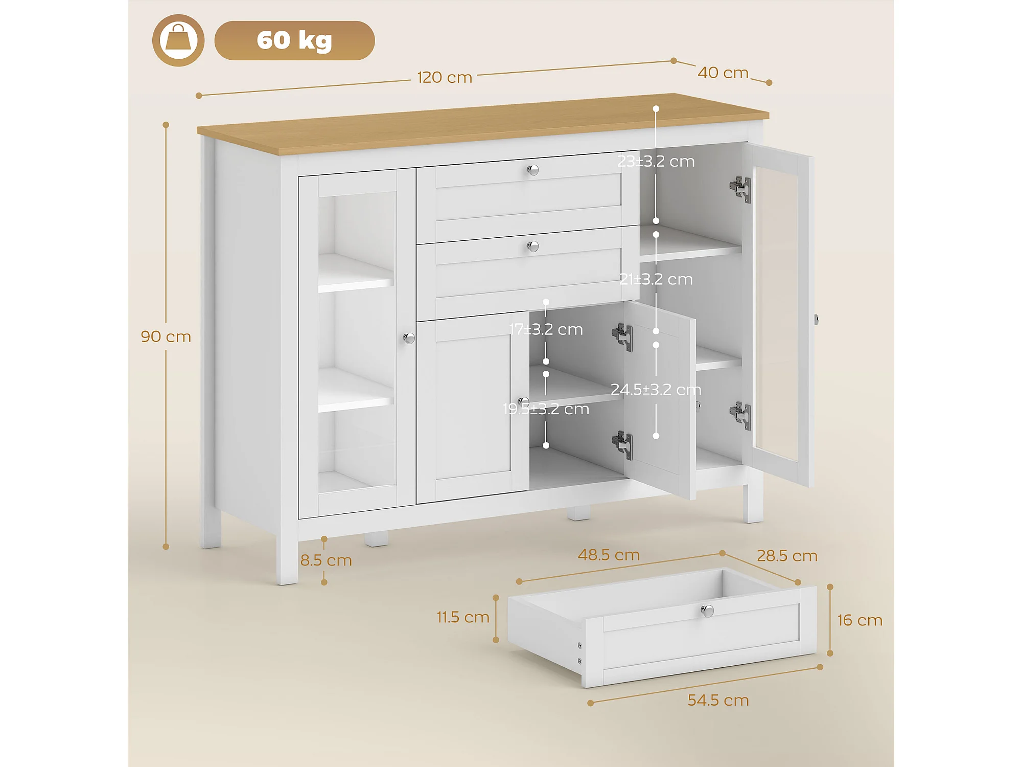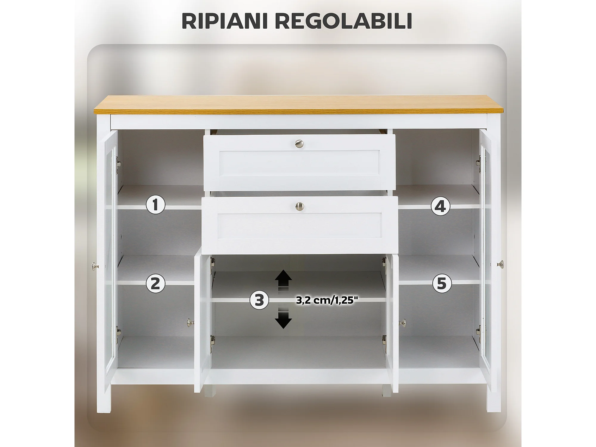 Credenza cucina, mobile cucina con armadietto a 2 ante soft close in vetro temperato