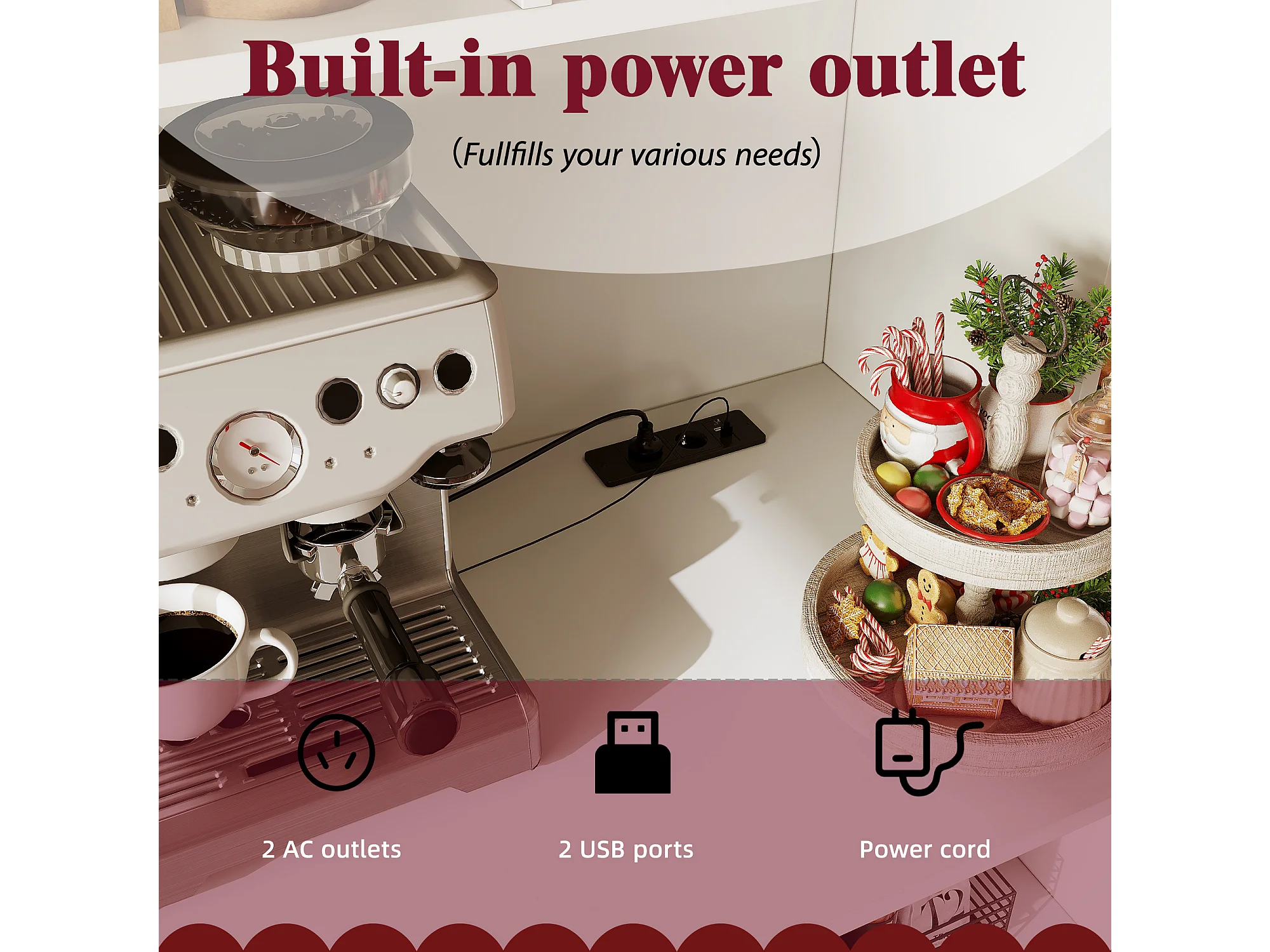 Credenza da cucina 110x38x180 cm con illuminazione a LED, presa elettrica, 5 ante e 1 cassetto - Bianco