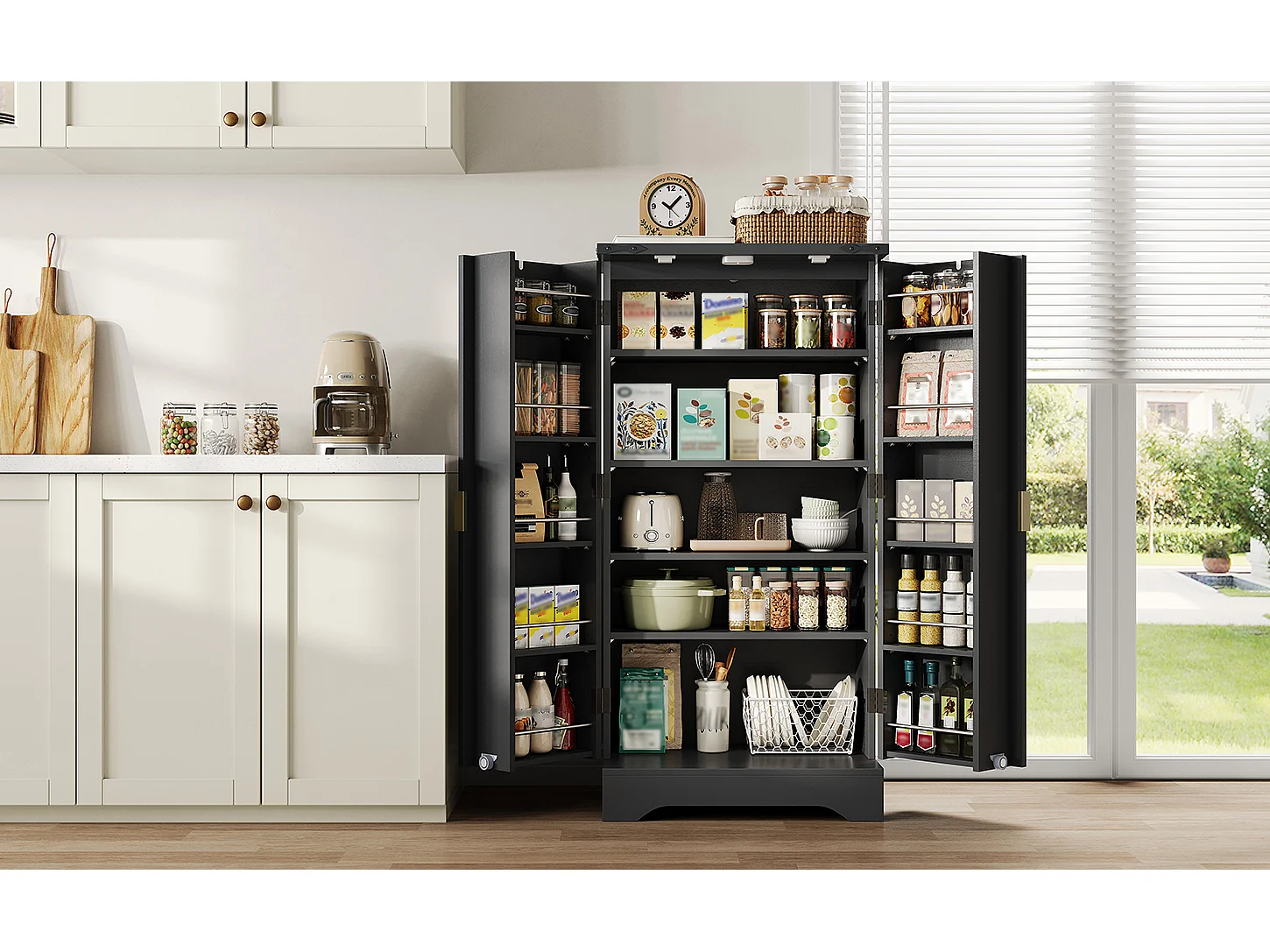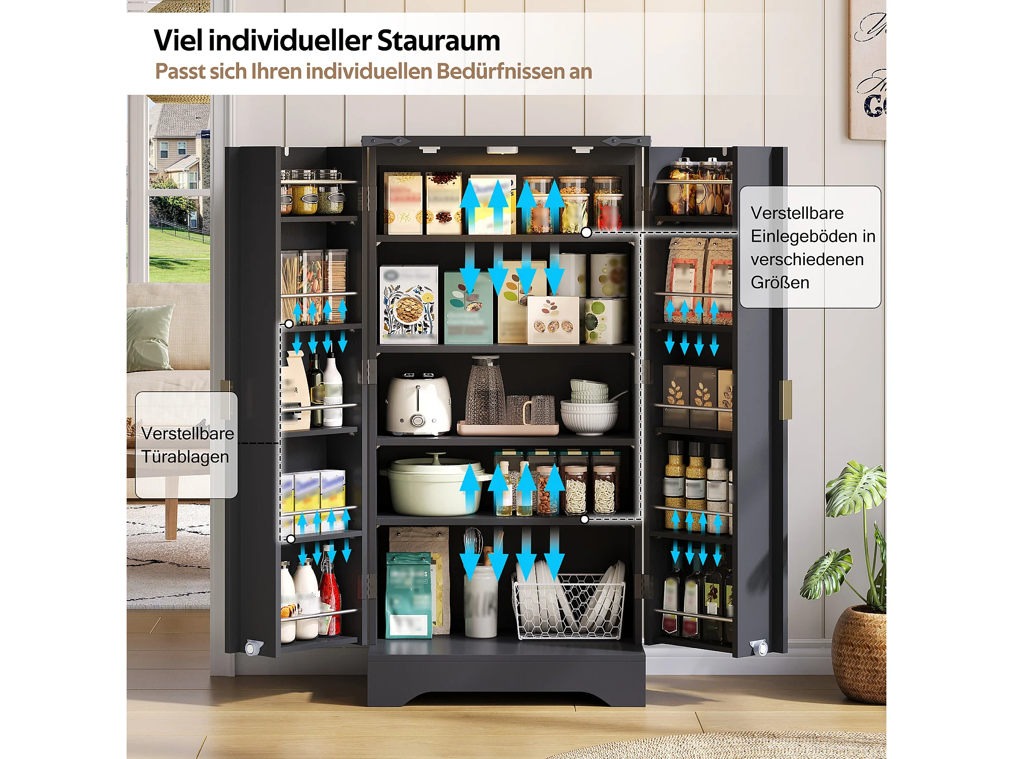 Credenza da cucina - 60,5 x 40 x 120 cm - con LED + 2 ante + ripiani regolabili - MDF - nero