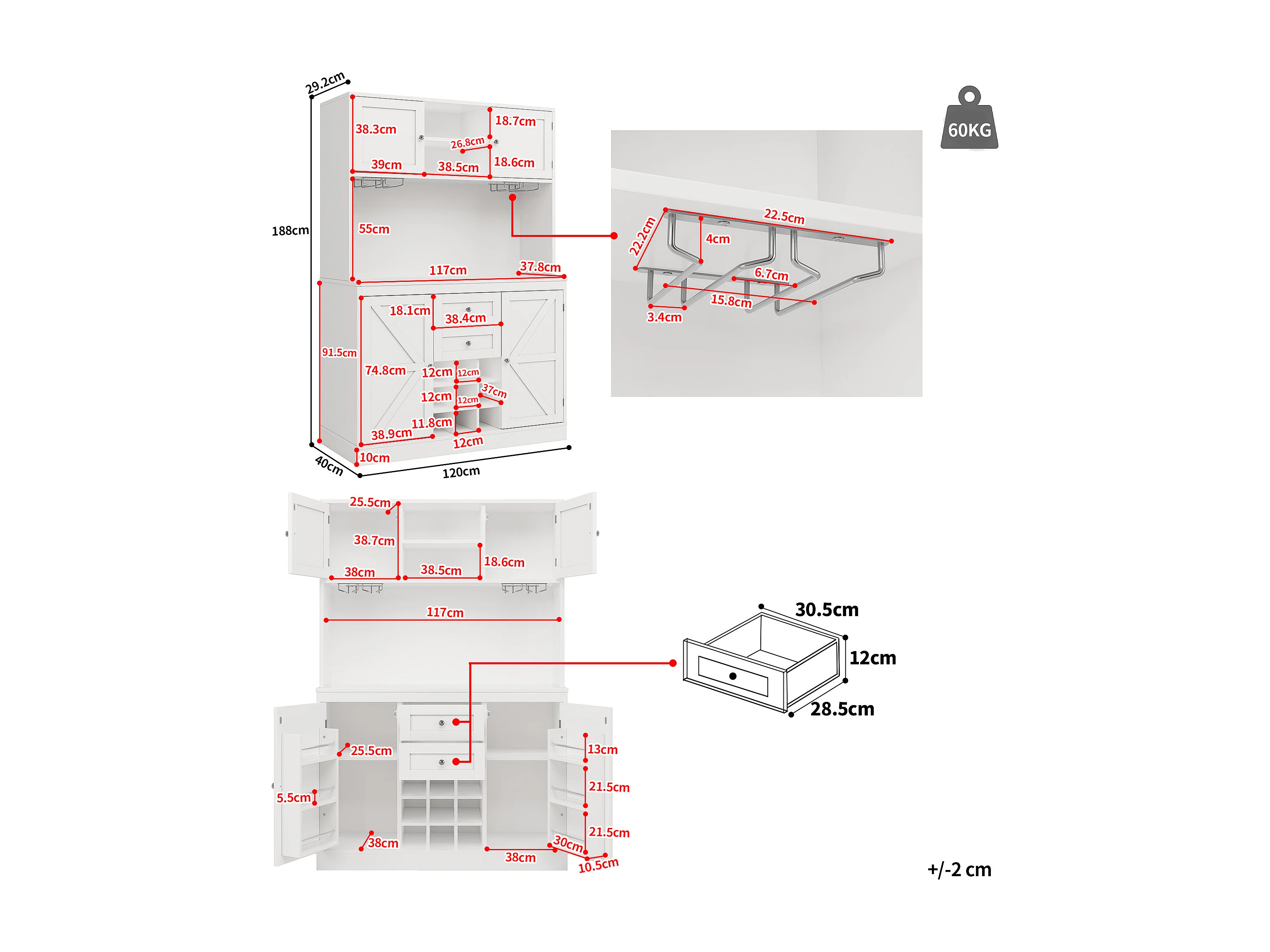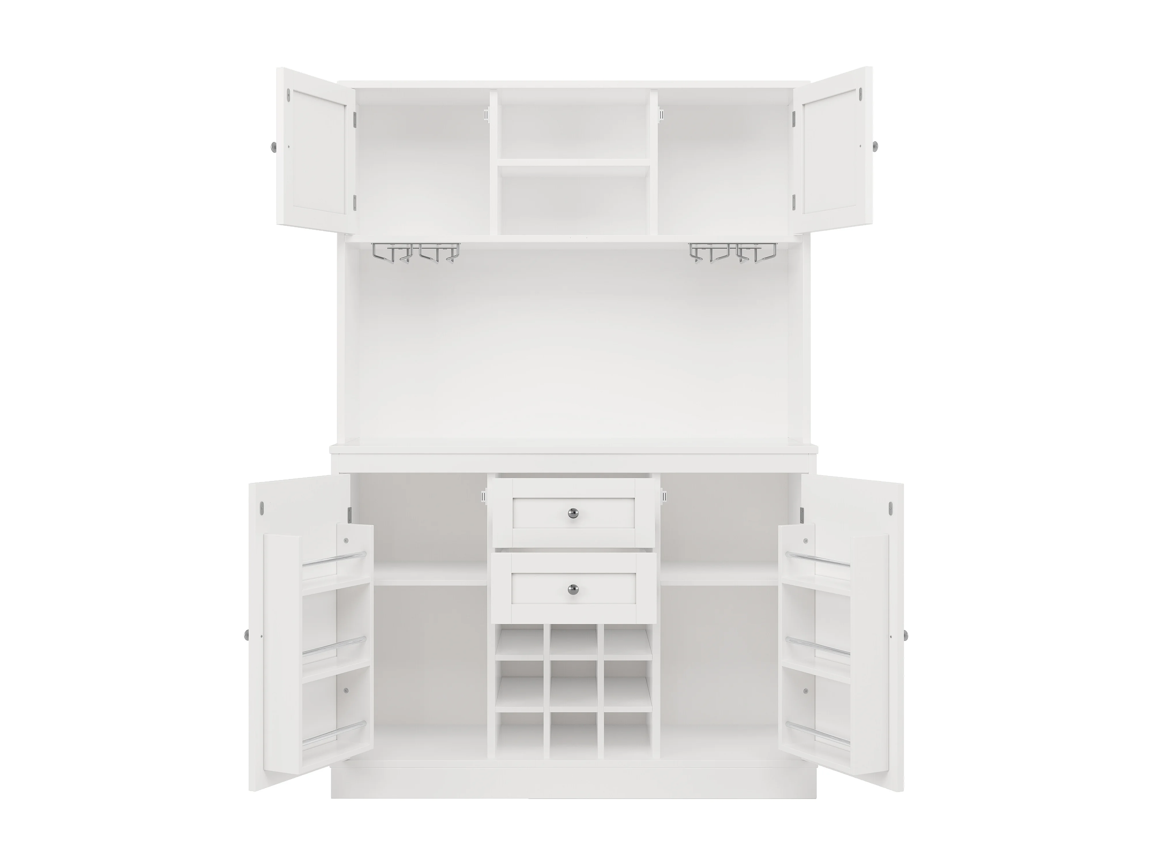Credenza da cucina con 4 ante, 2 cassetti e portabottiglie - Legno MDF - Nero