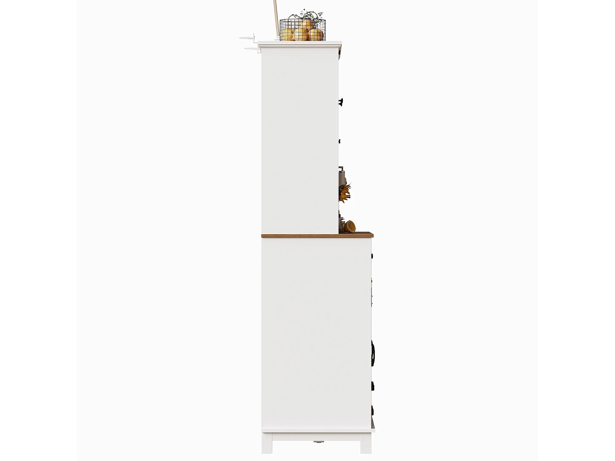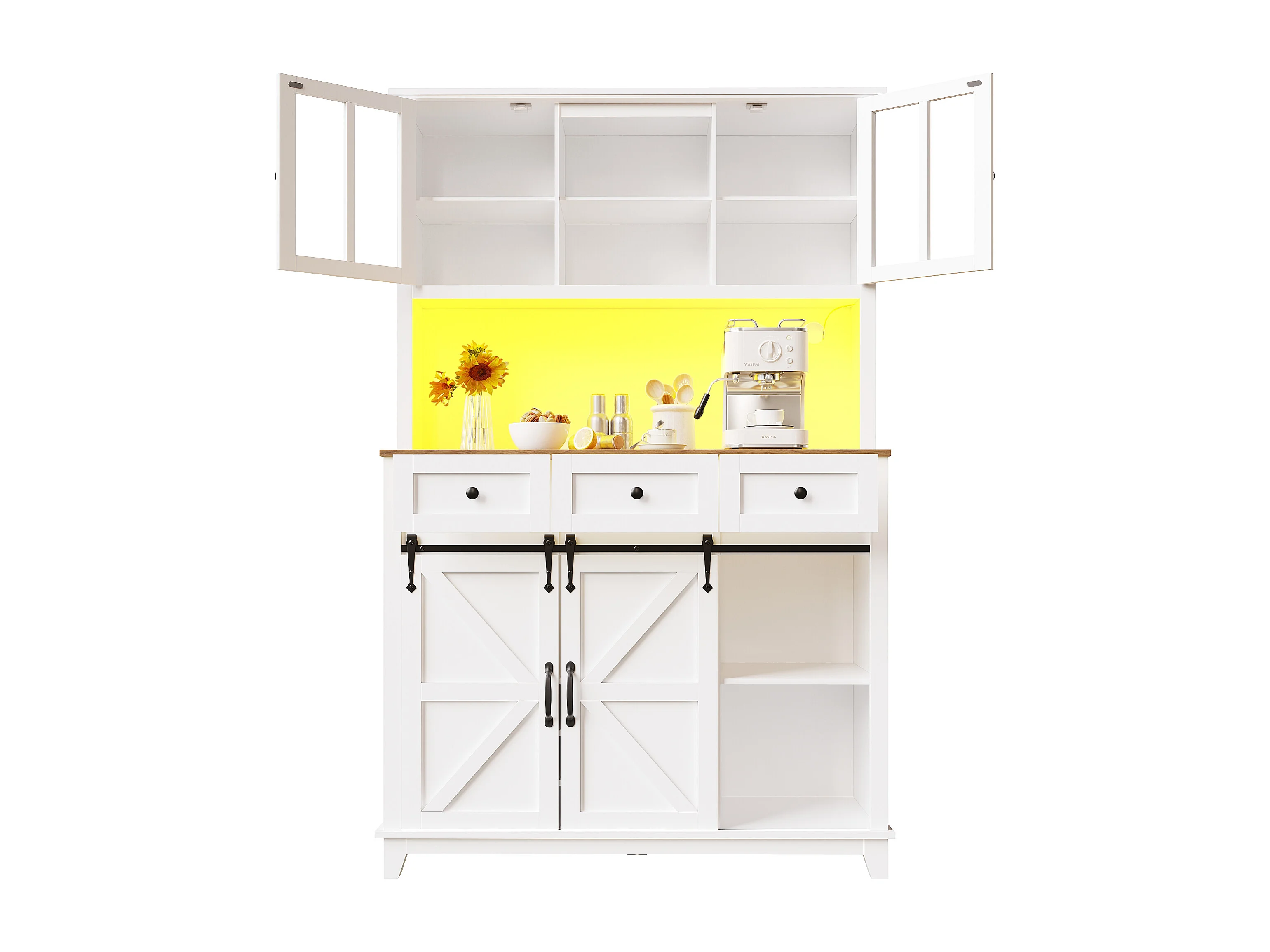 Credenza da cucina con 4 ante, 3 cassetti, portabottiglie e illuminazione a LED - Legno MDF - Bianco