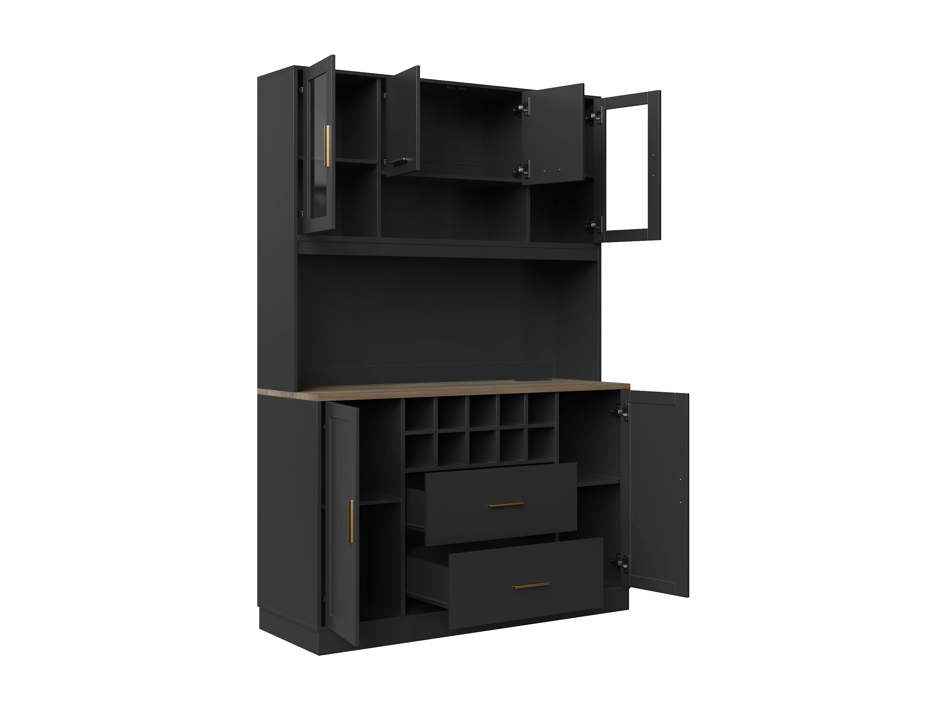Credenza da cucina con illuminazione a LED e presa elettrica, 6 ante, 2 cassetti - Nero
