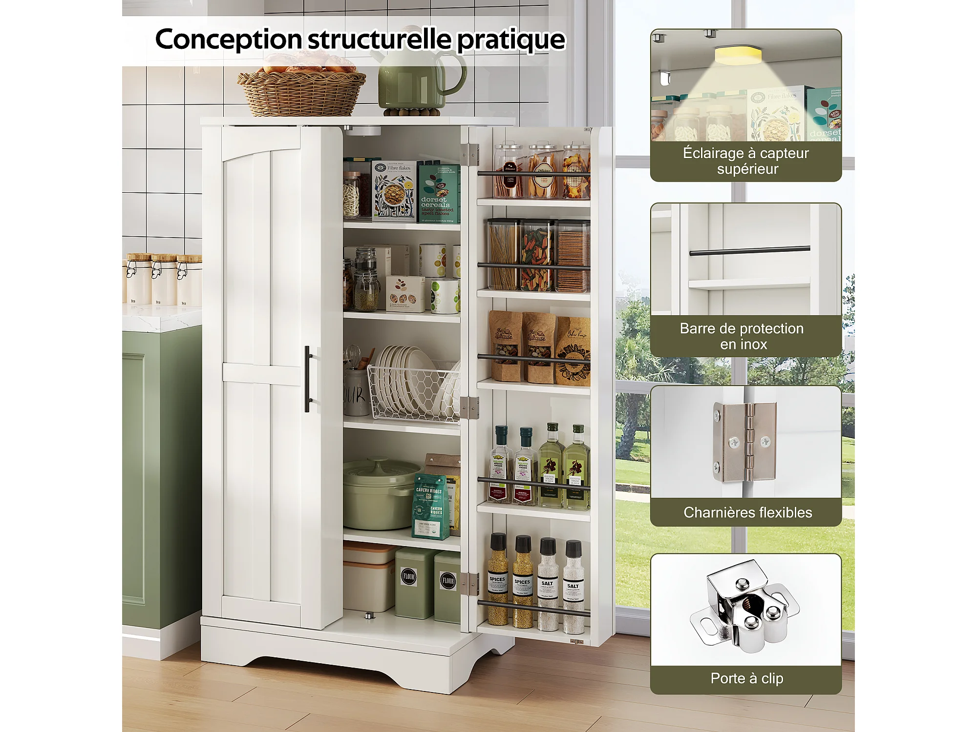 Credenza da cucina indipendente, 60 x 40 x 120 cm, mobiletto da cucina con anta, corrimano, bianco