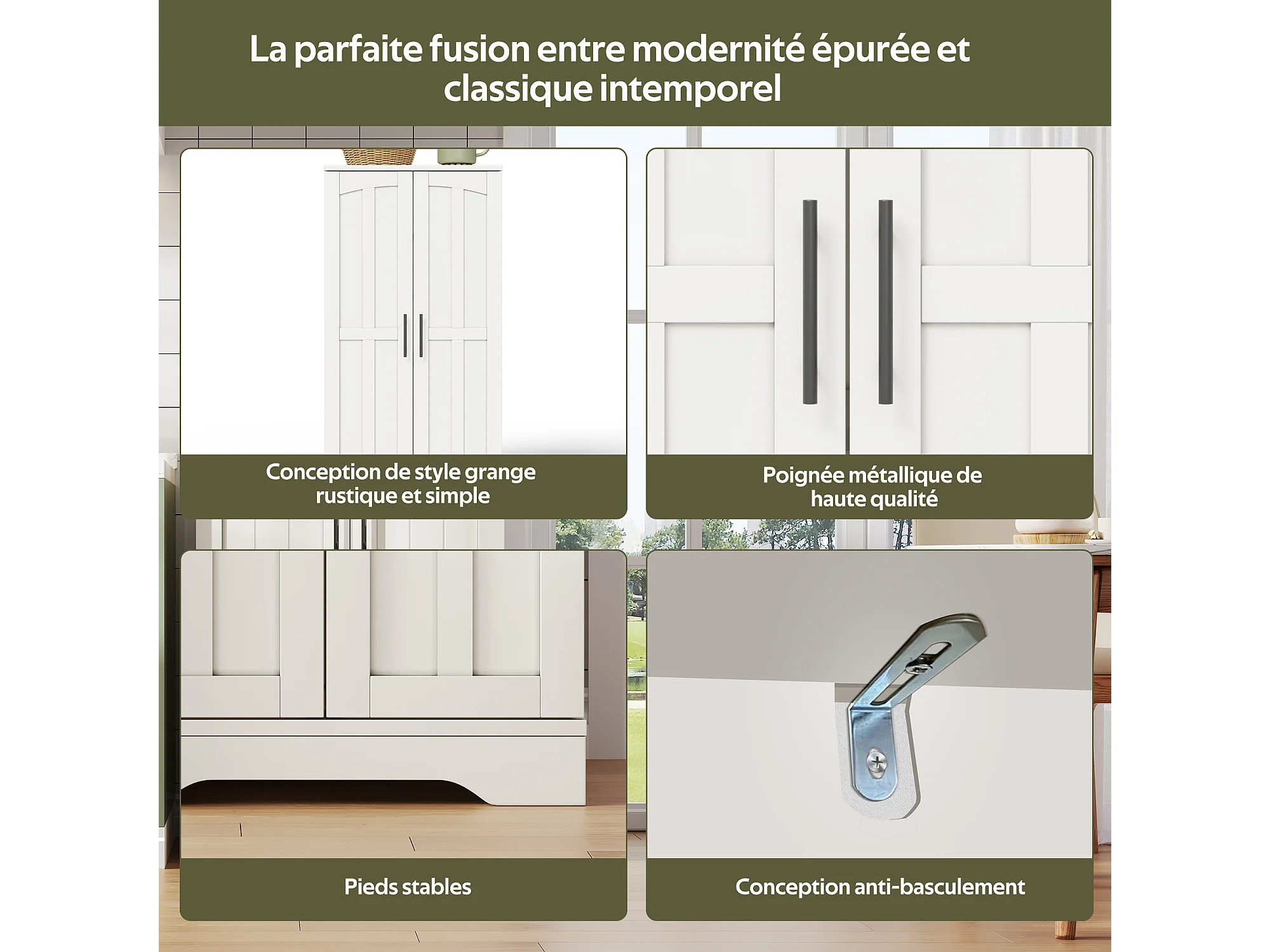 Credenza da cucina in stile country - Mobile con 2 ante, ripiani regolabili, bianco