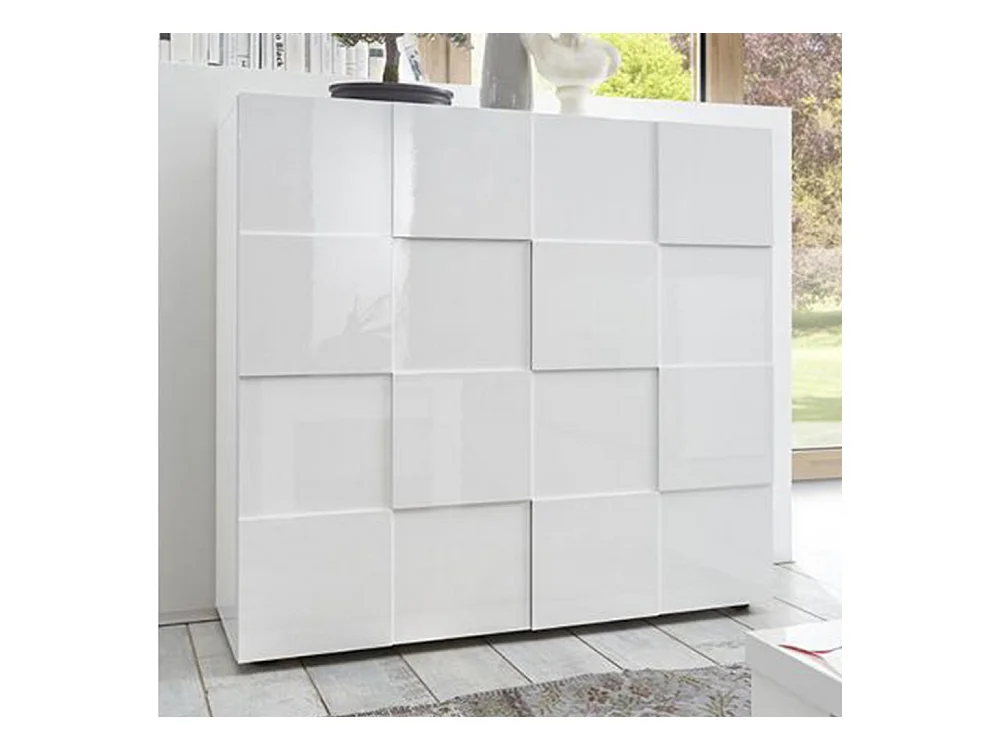 Credenza da salotto con due ante design geometrico 121x111 MCL3 bianco lucido