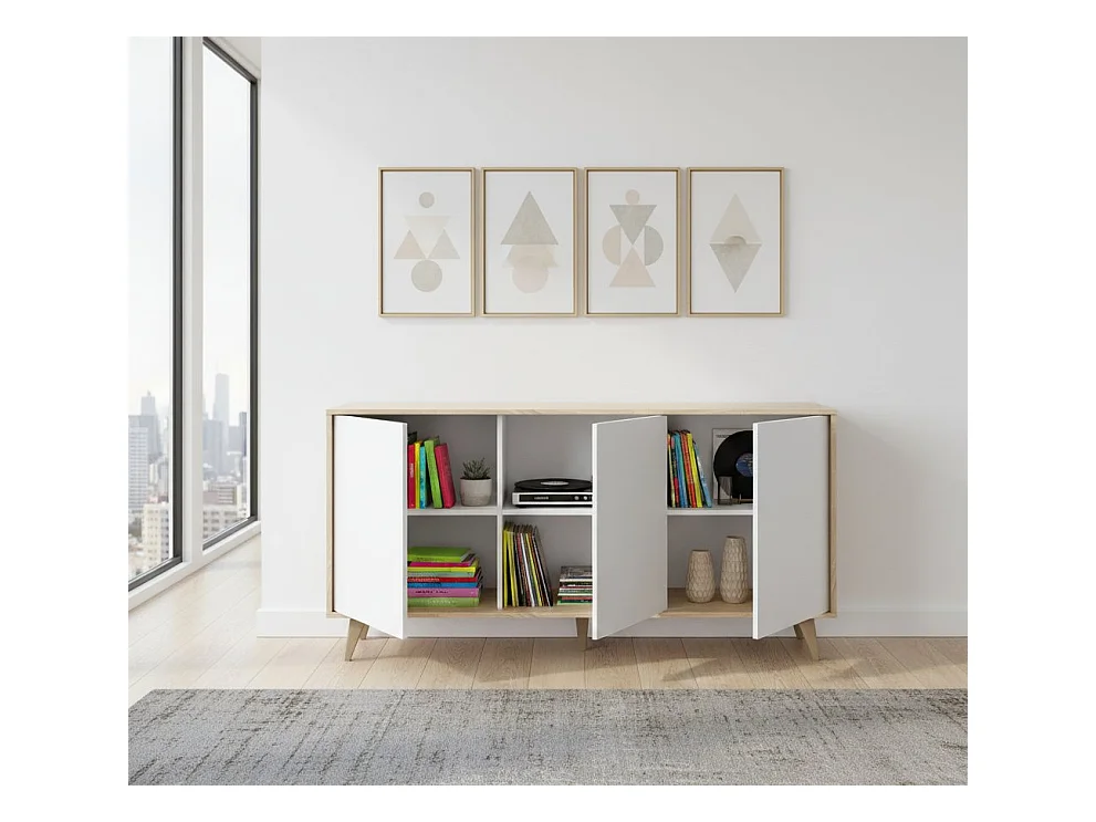 Dmora - Credenza Joy, 150x43h75 cm, Quercia e Bianco