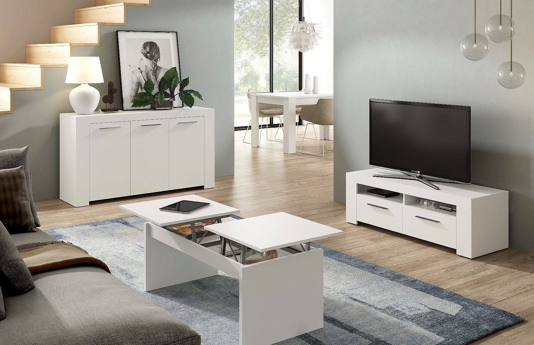 Dmora - Credenza Amaculi, 144x42h80 cm, Bianco