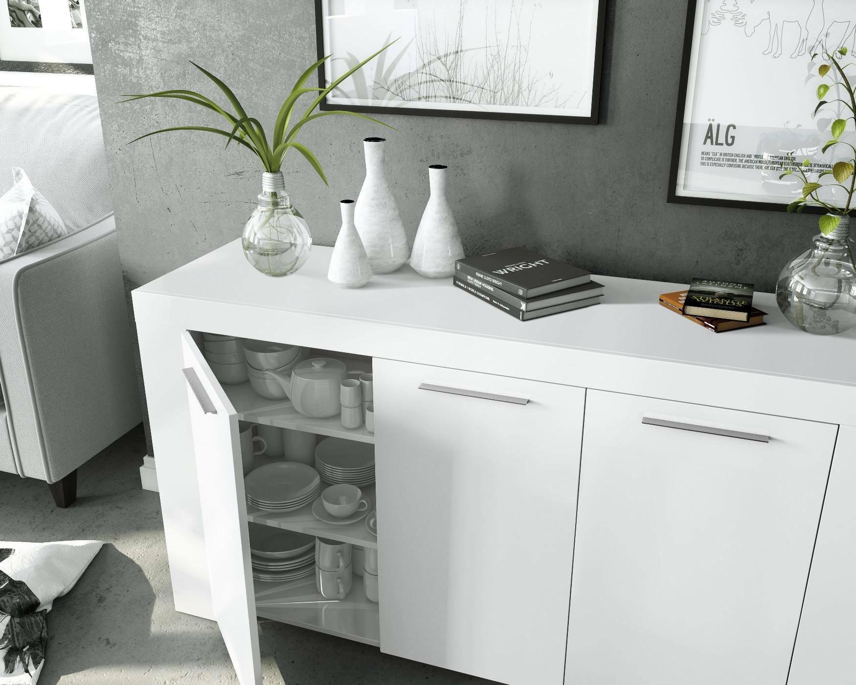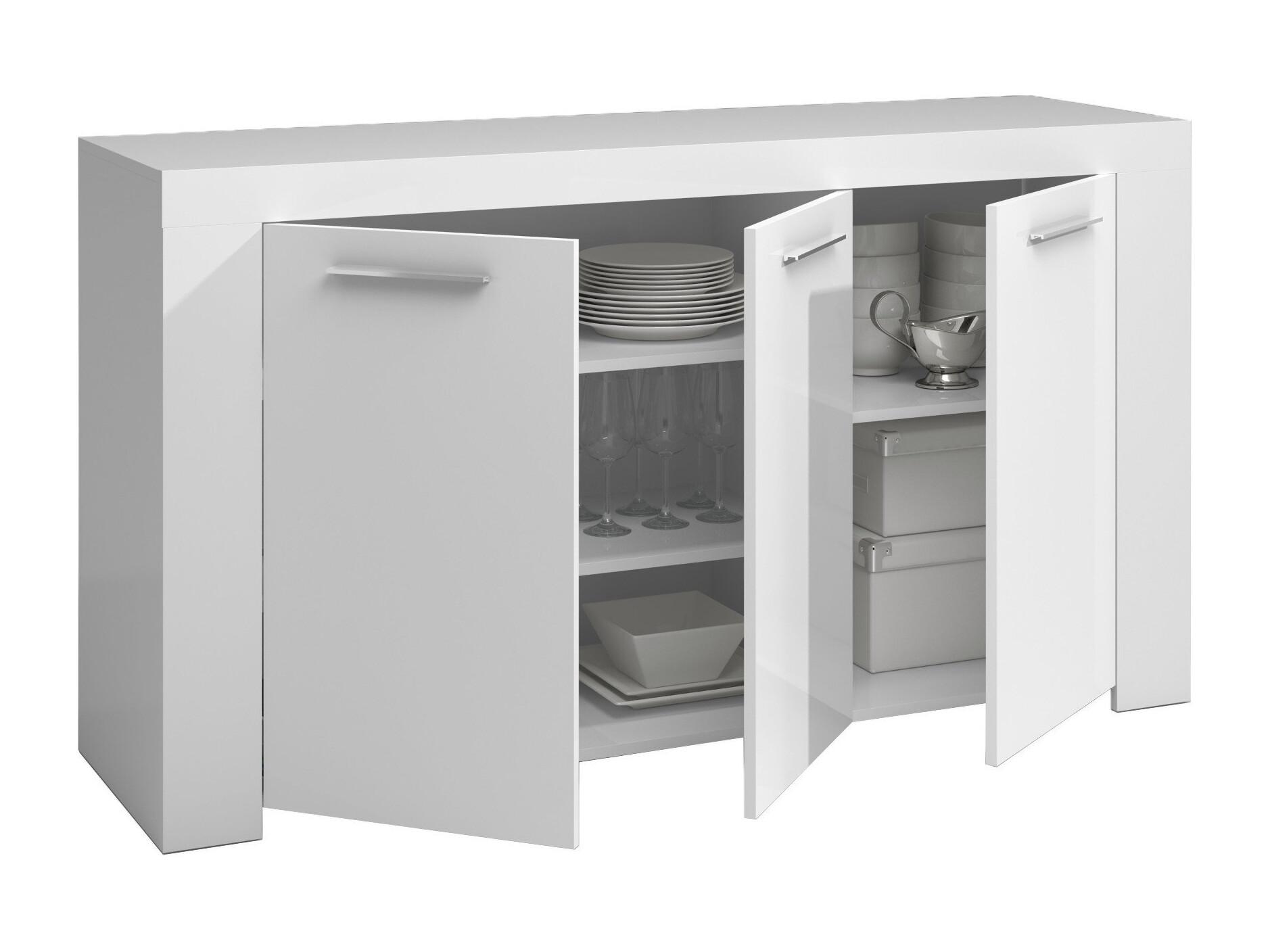 CREDENZA - Madia moderna a 3 ante, Buffet da soggiorno, Mobile porta TV, Madia per salotto, cm 144x42h80, Bianco.