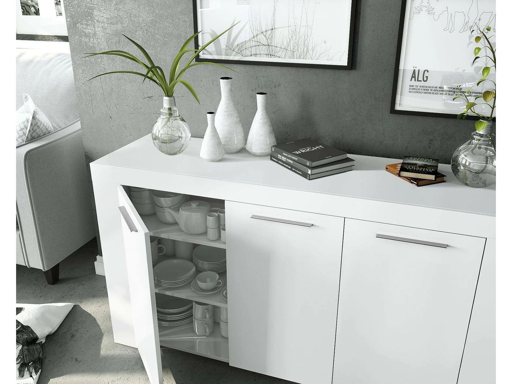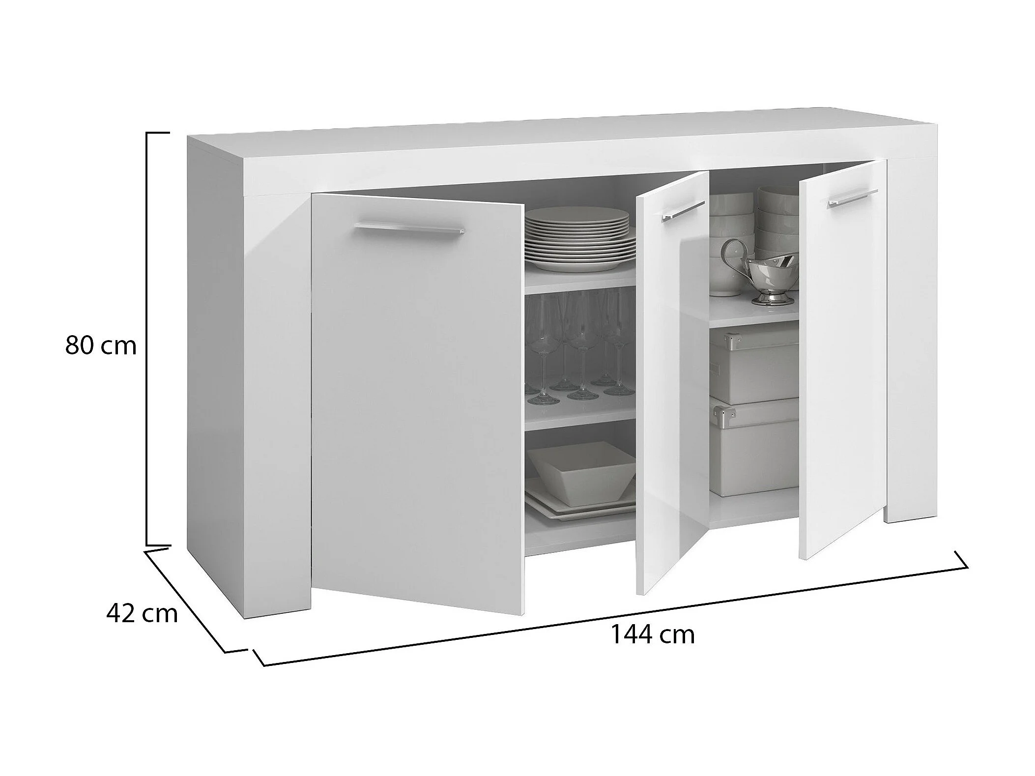 Credenza Amaculi, 3 Ripiani, 42x144x80h cm Bianco, Madia