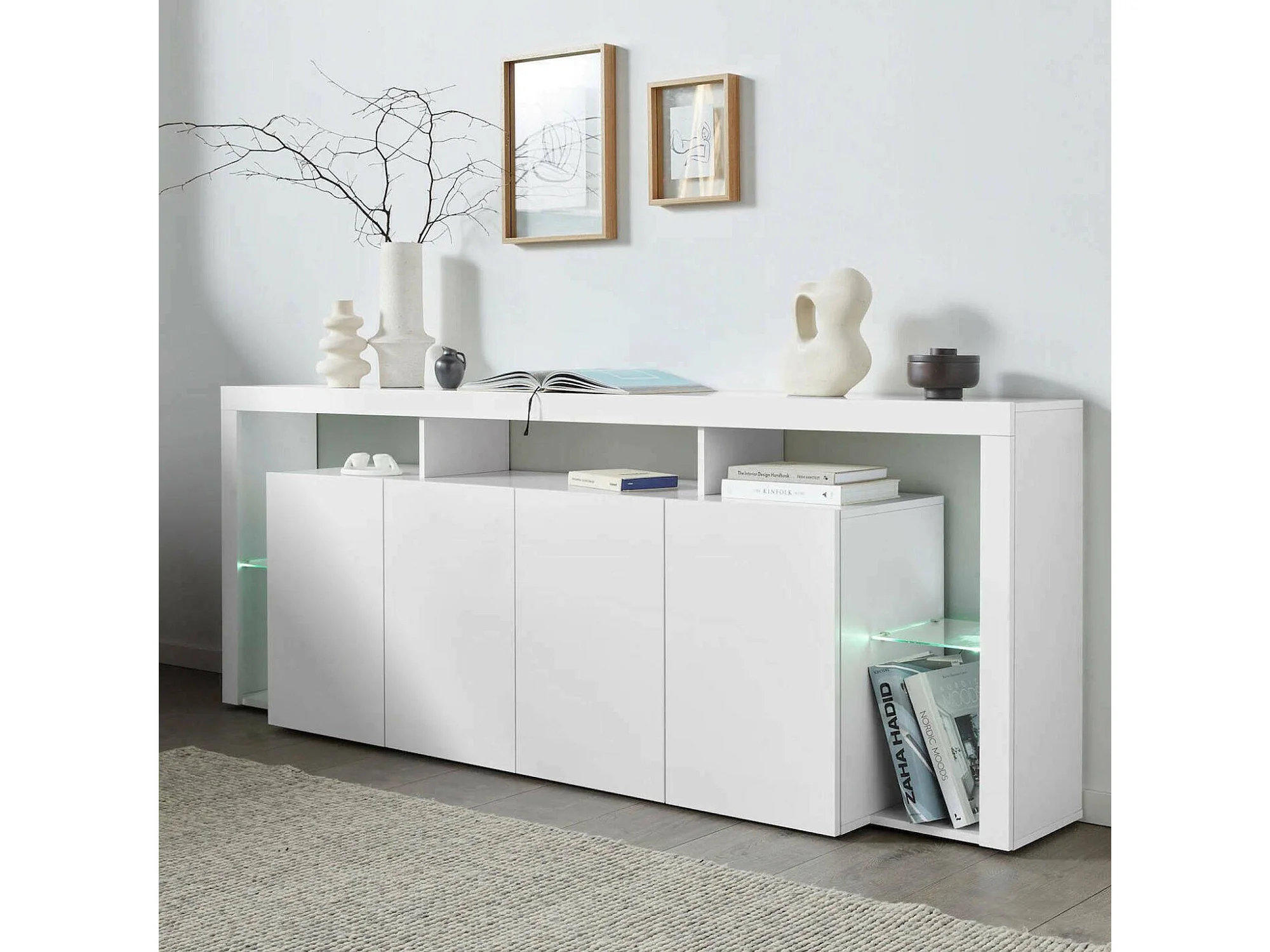 Credenza Atak, 4 Ripiani Made in Italy, 40x220x80h cm Bianco Lucido, Madia