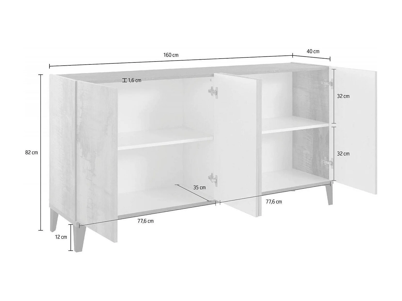 Credenza Ashley, 2 Ripiani Made in Italy, 40x160x82h cm Bianco Lucido, Madia
