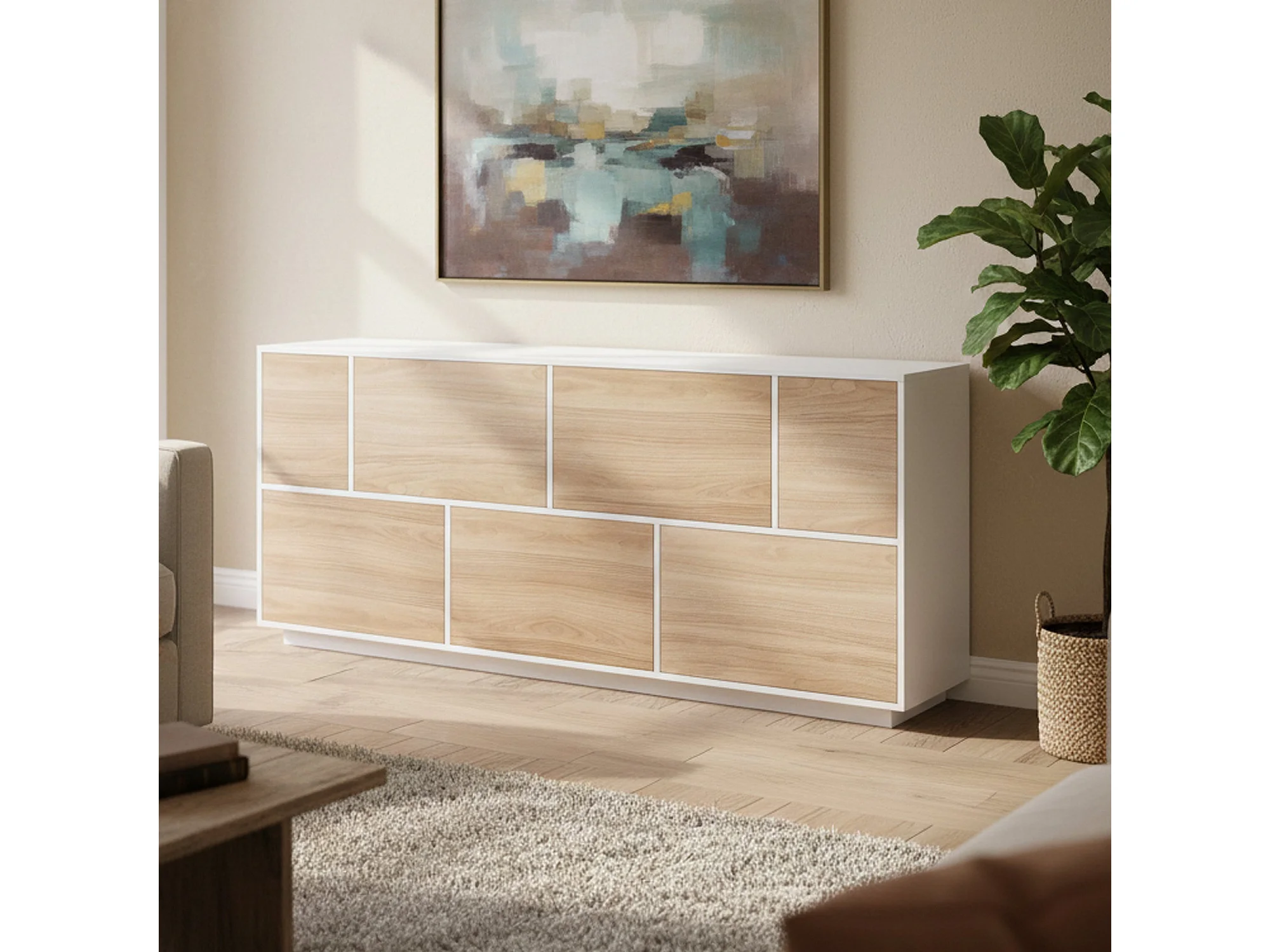 Credenza Clinoumite, 7 Ante Made in Italy, 41x200x86h cm Bianco Lucido, Madia