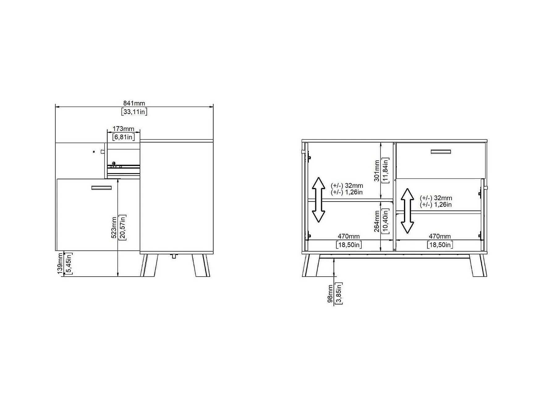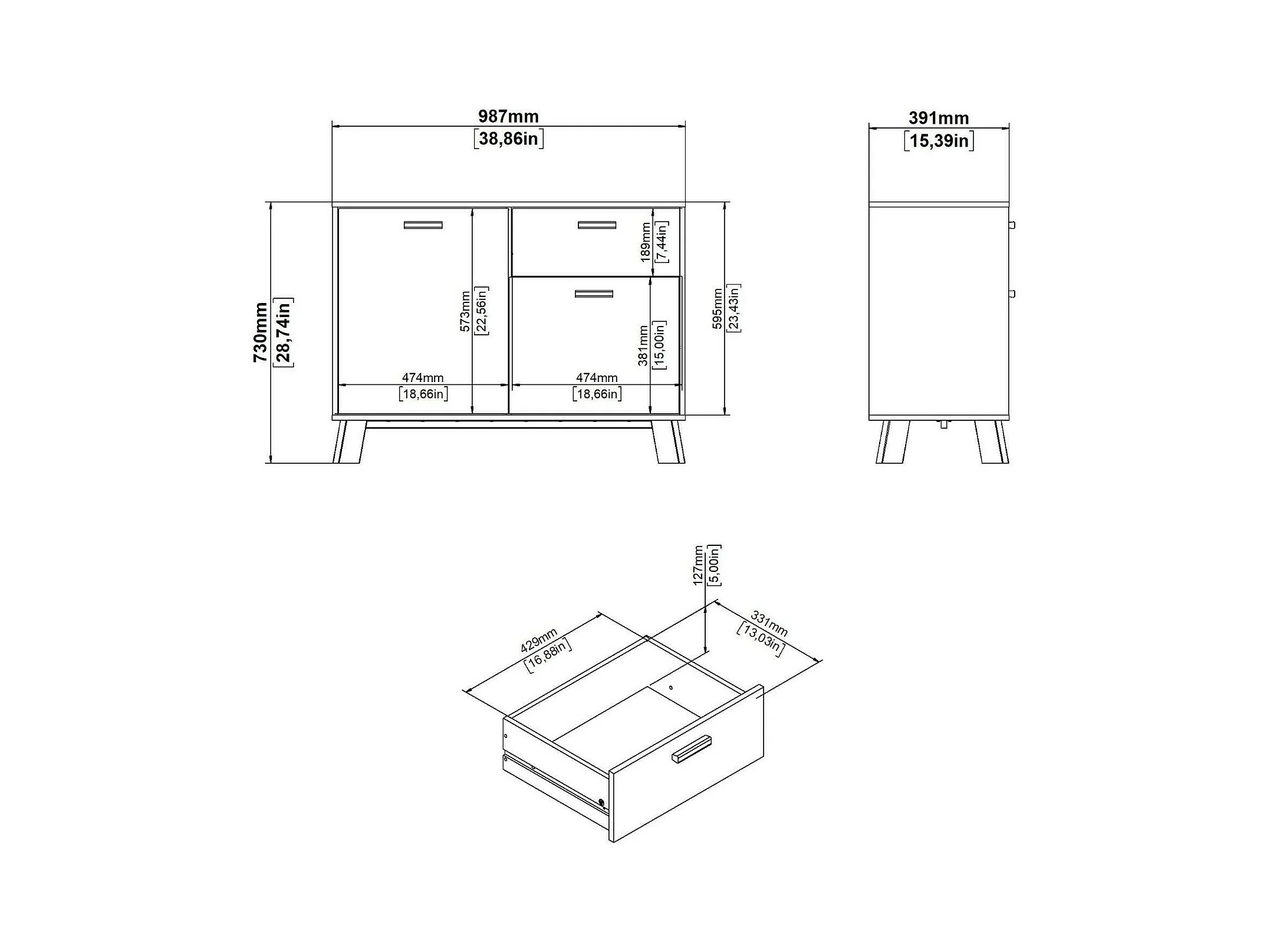 Dmora - Credenza Tulo, 99x39 h73 cm, Rovere e Bianco