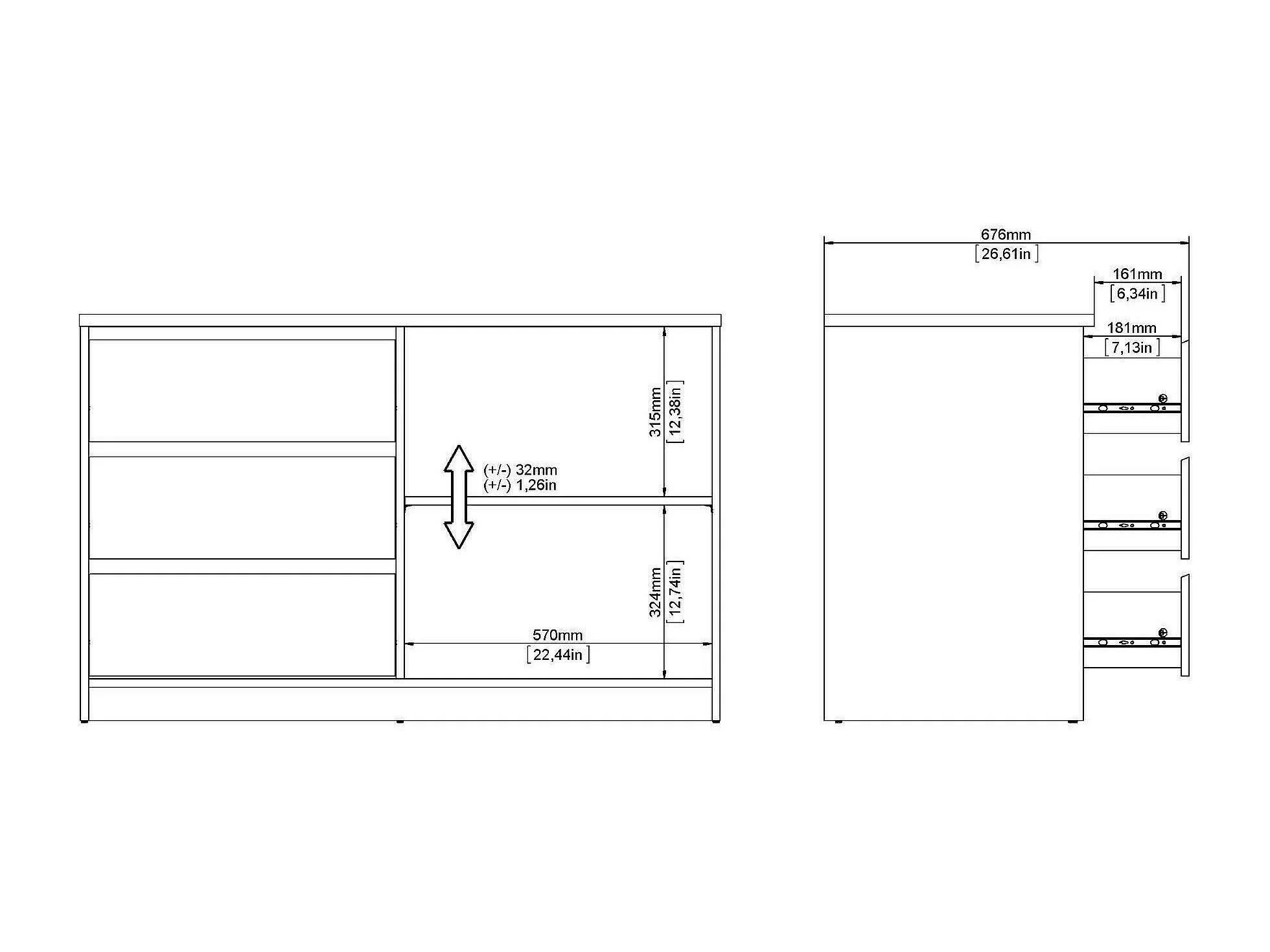 Cassettiera decorata con righe 3 cassetti, marrone naturale
