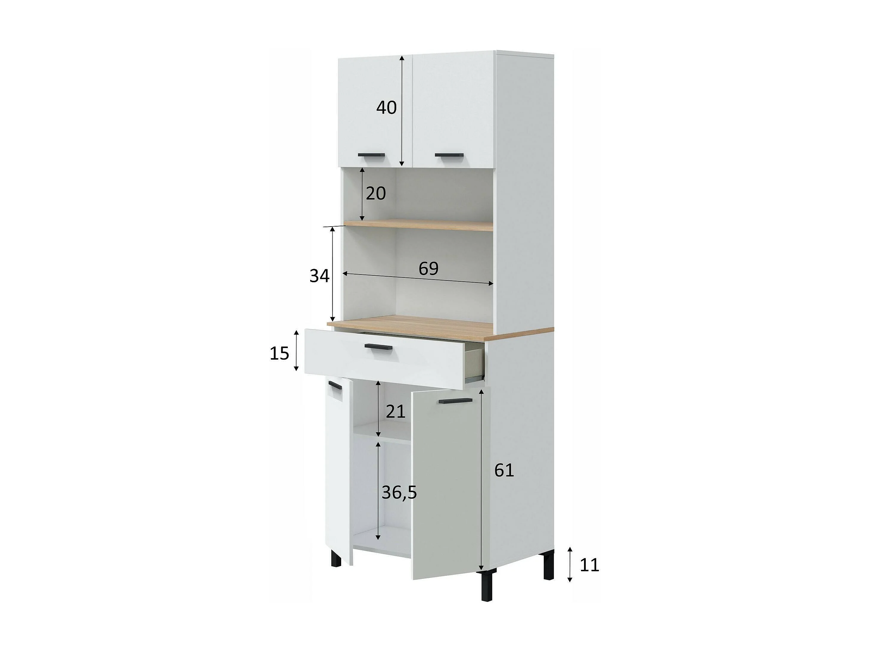 Credenza Florent, 3 Ripiani, 40x72x185h cm Bianco, Madia
