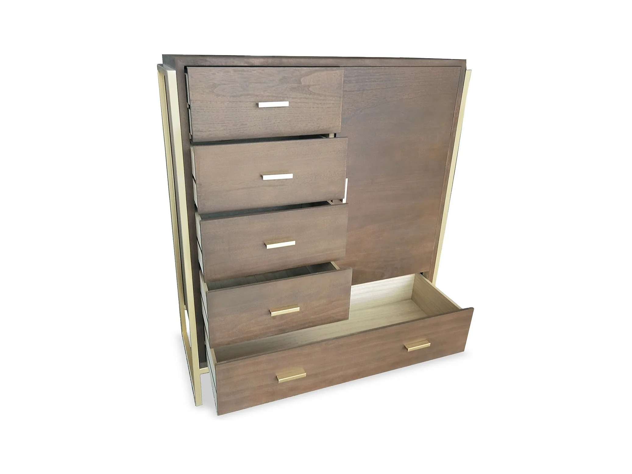 Credenza Edgar a 5 cassetti con 1 anta L90cm Legno marrone e metallo dorato