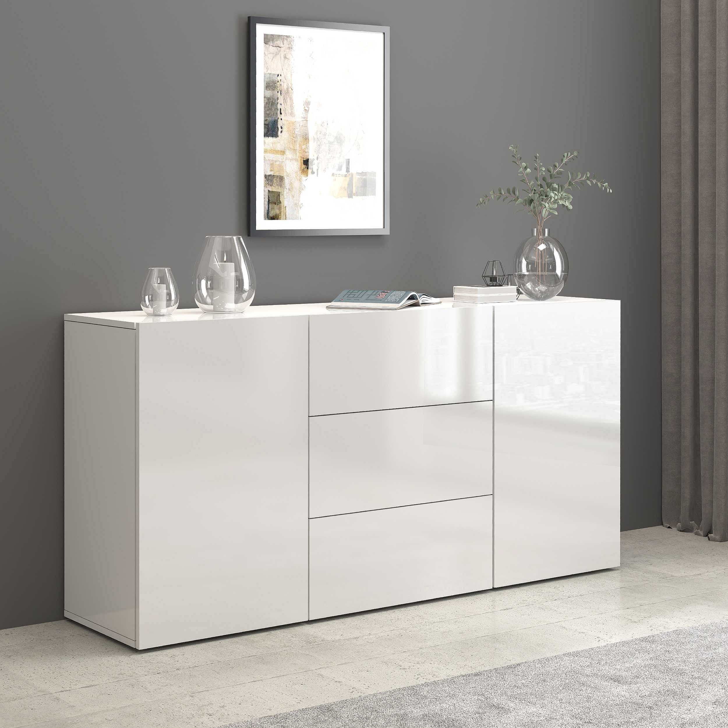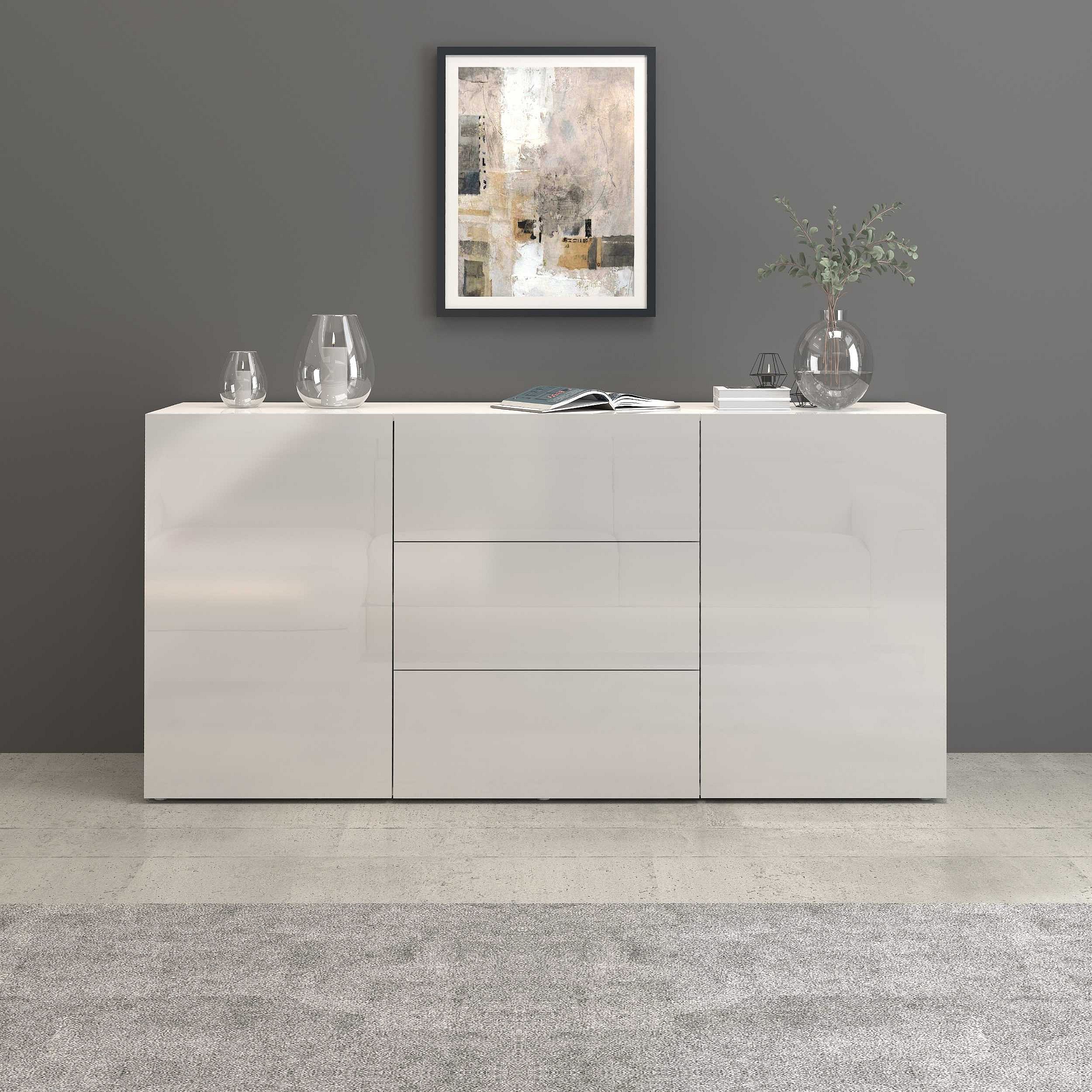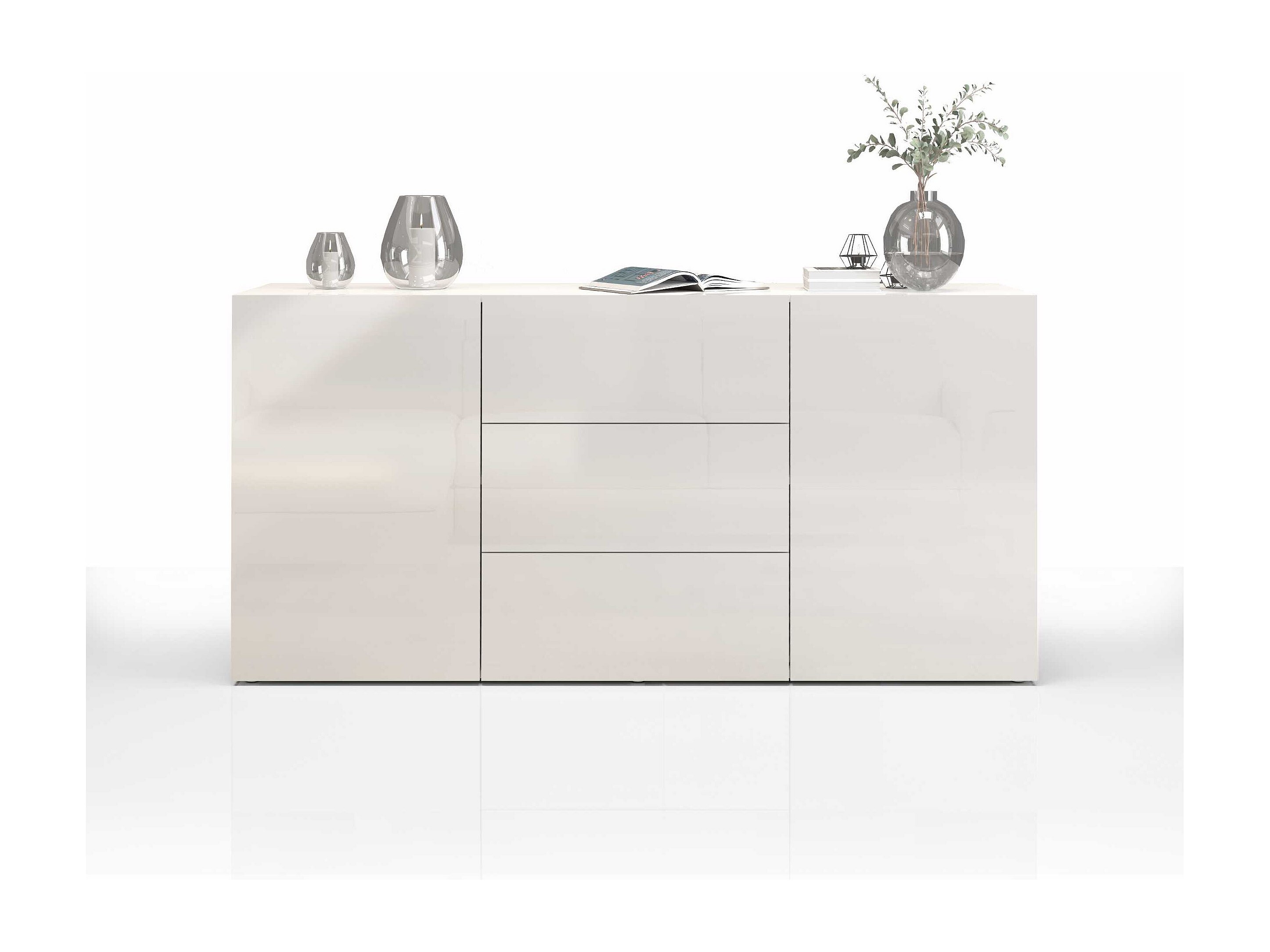 Credenza Egypt a 2 ante e 3 cassetti bianco lucido 160x40x80 cm