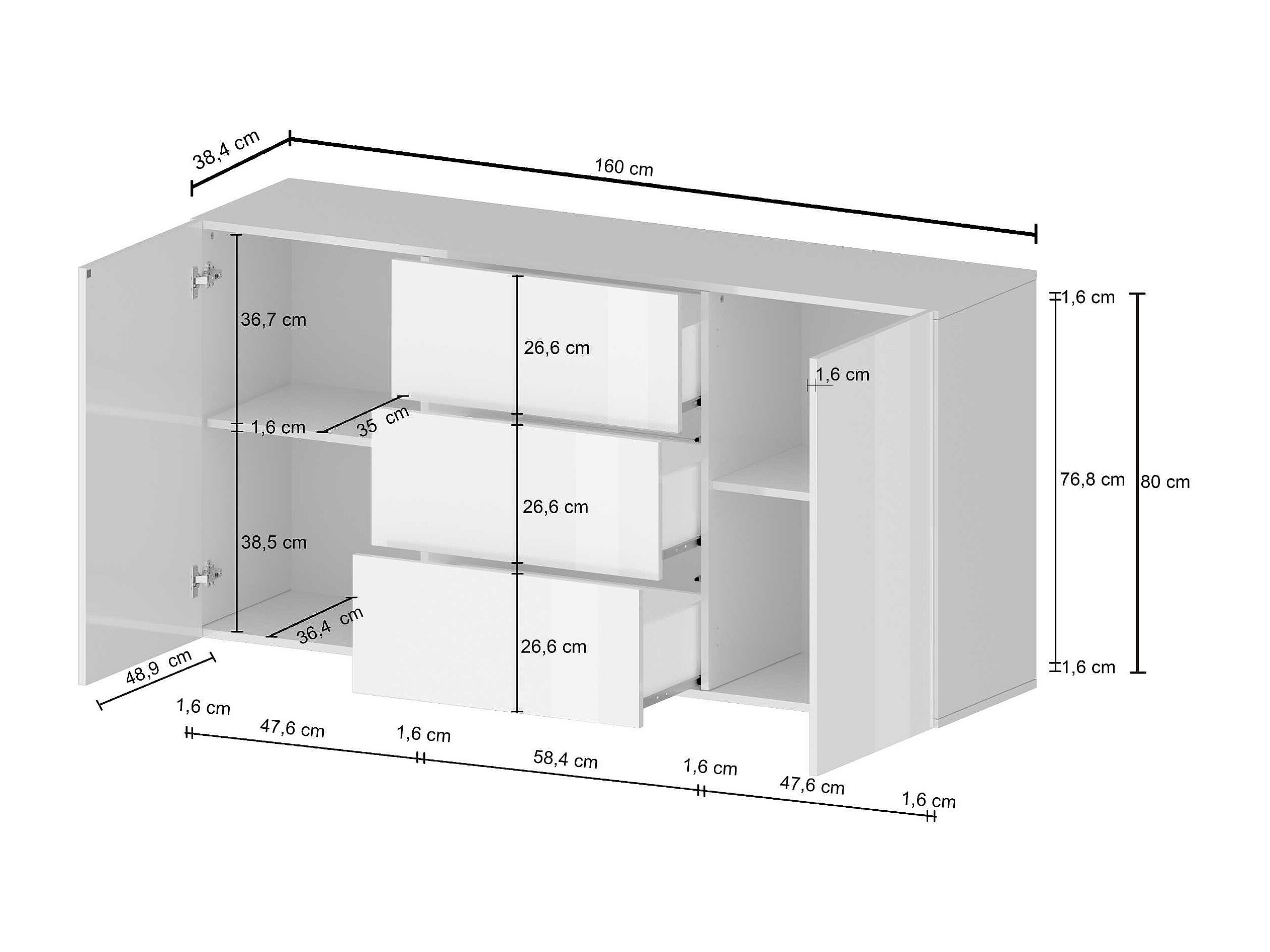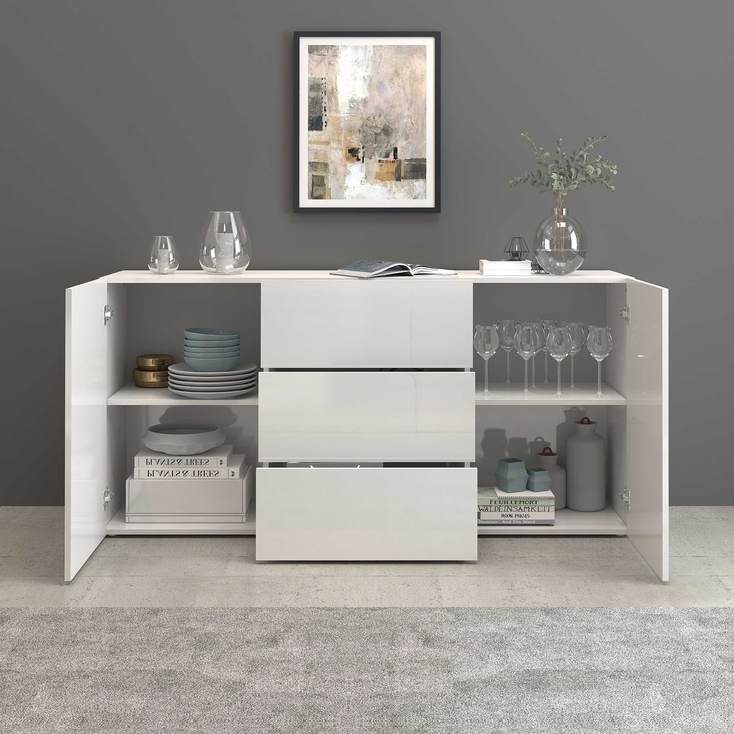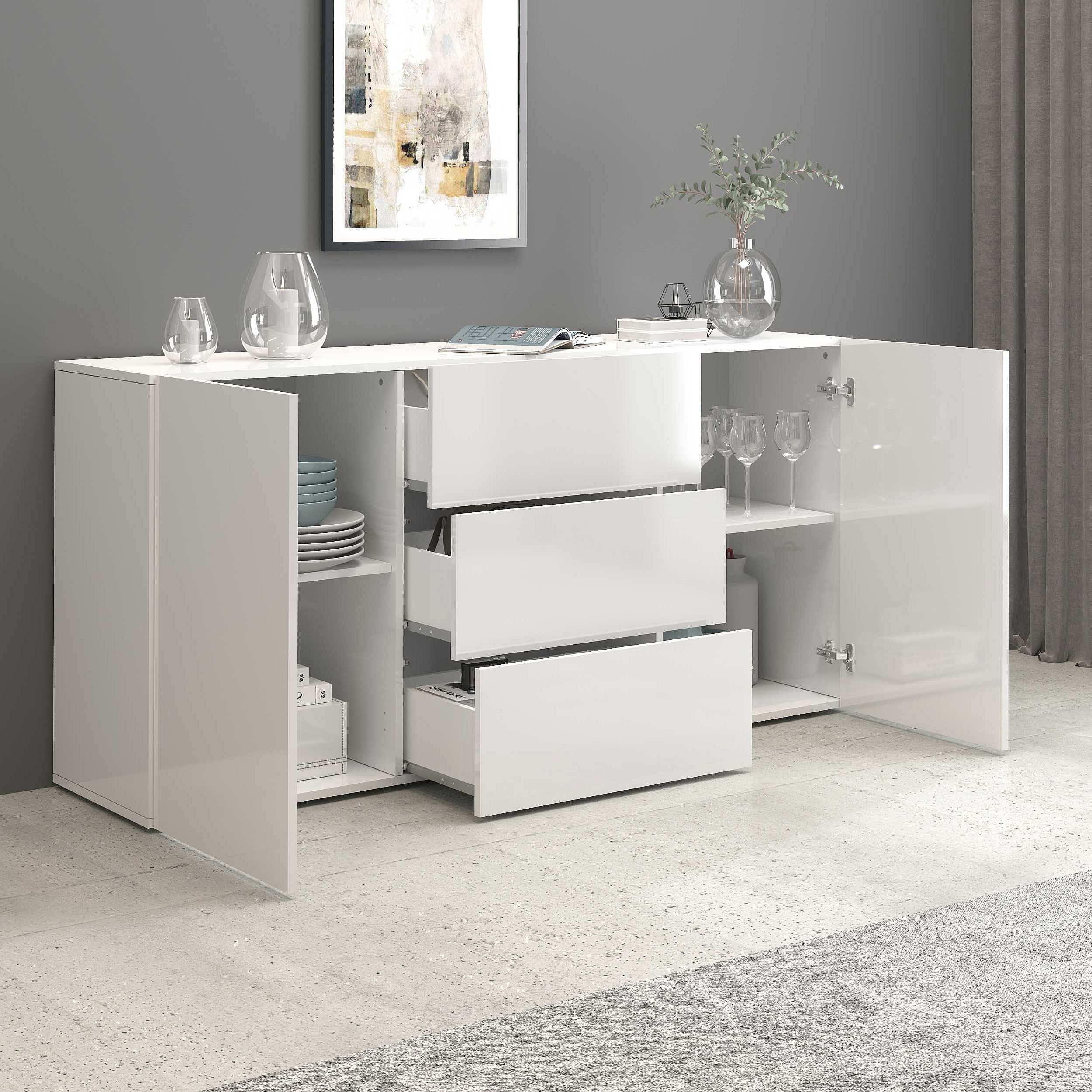 Credenza Egypt a 2 ante e 3 cassetti bianco lucido 160x40x80 cm