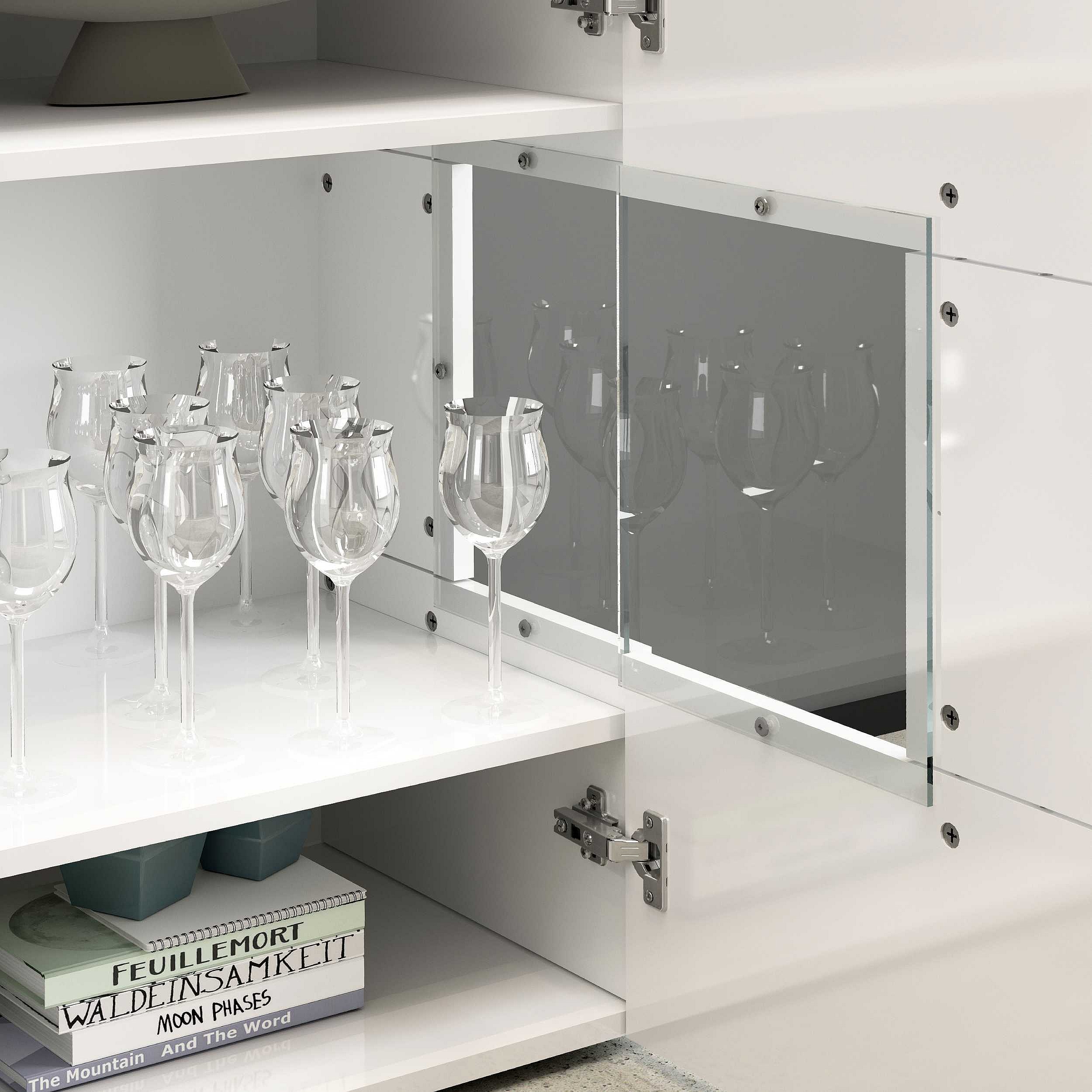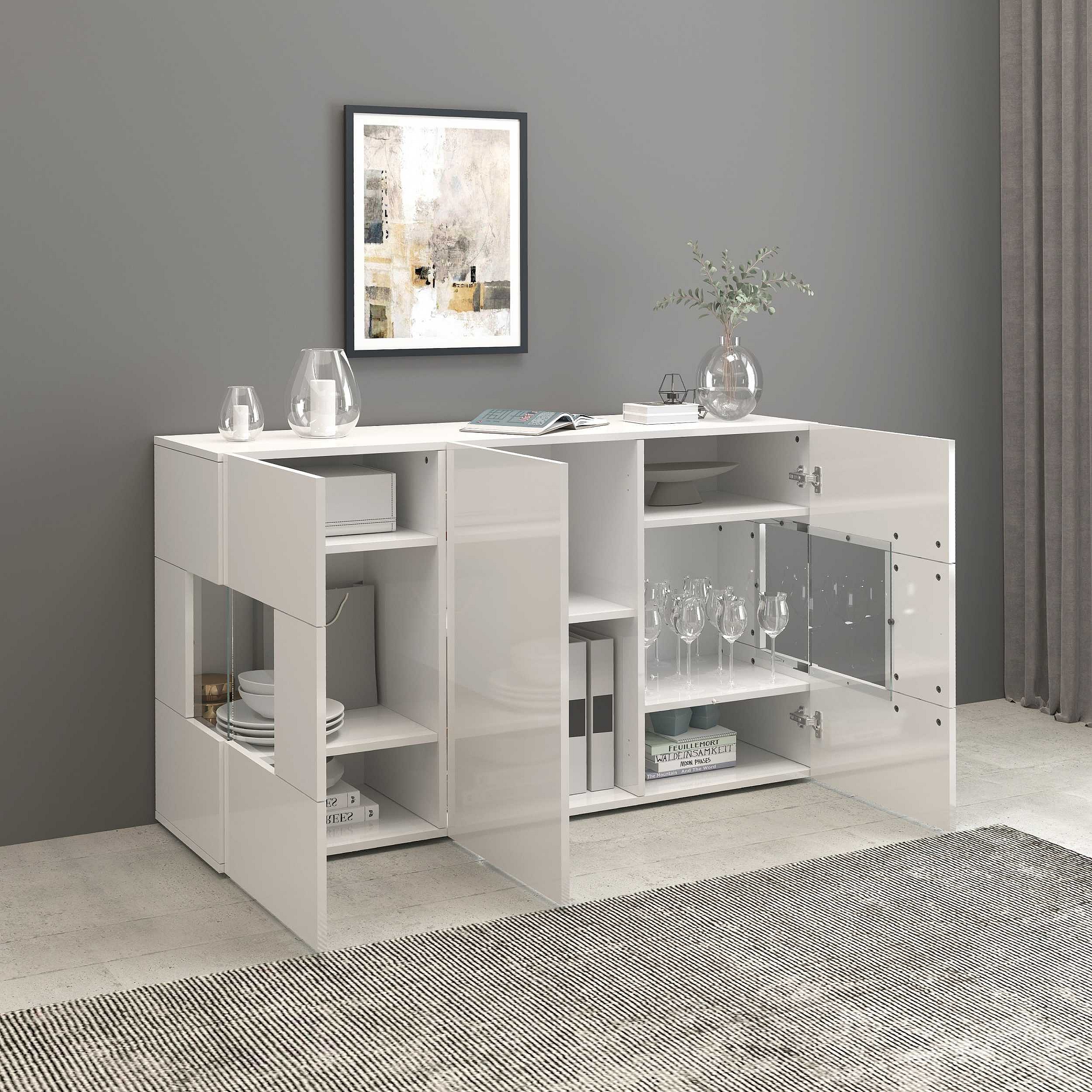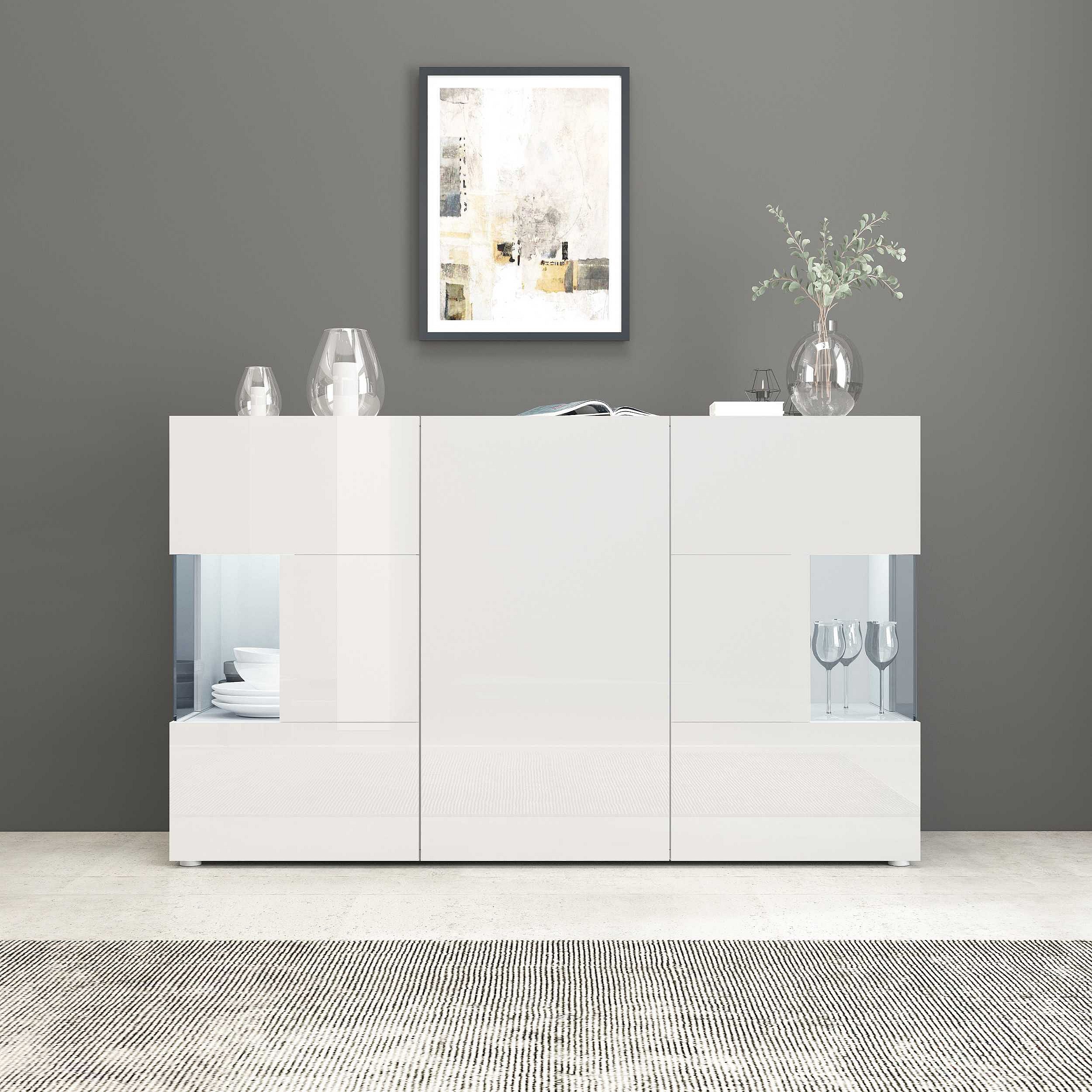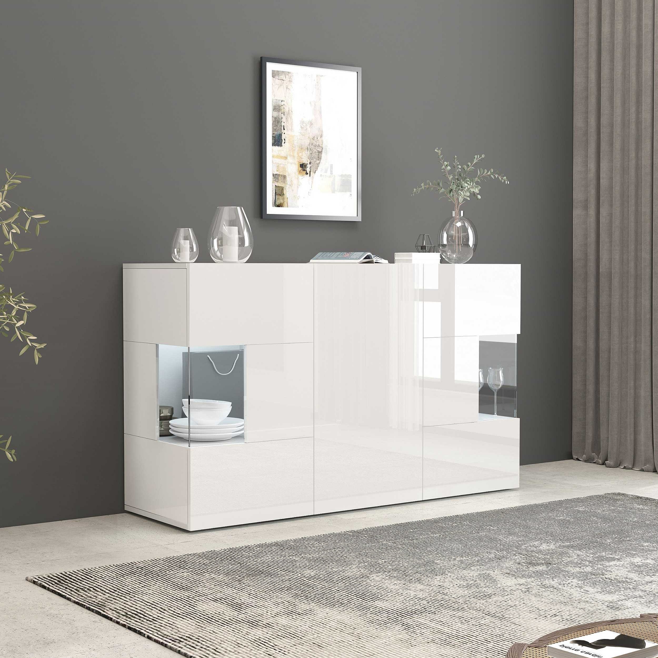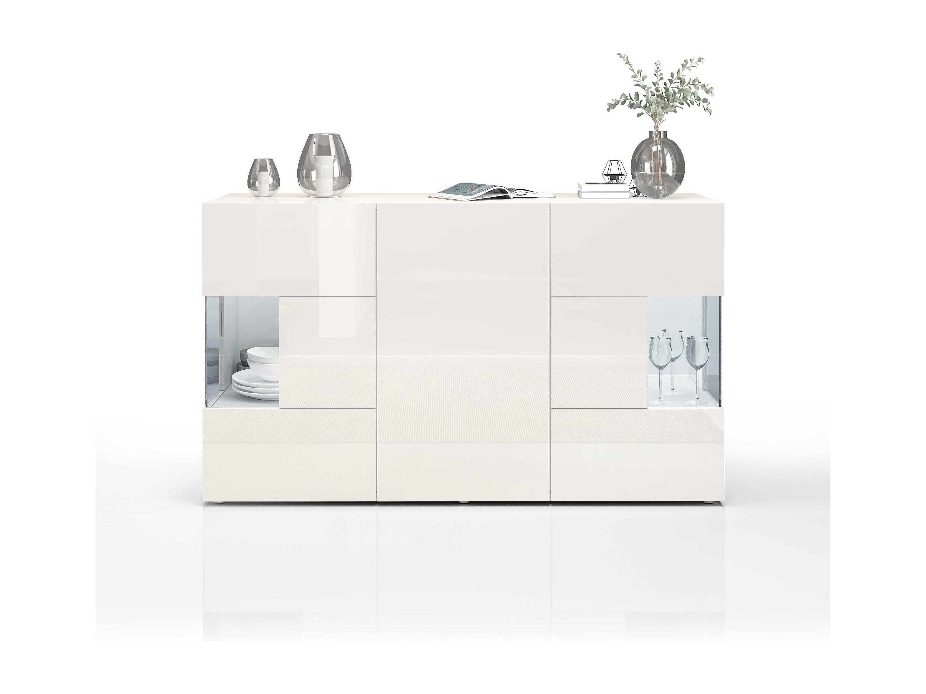 Credenza Egypt a 3 ante con inserti in vetro espositivi bianco lucido 135x40x80 cm