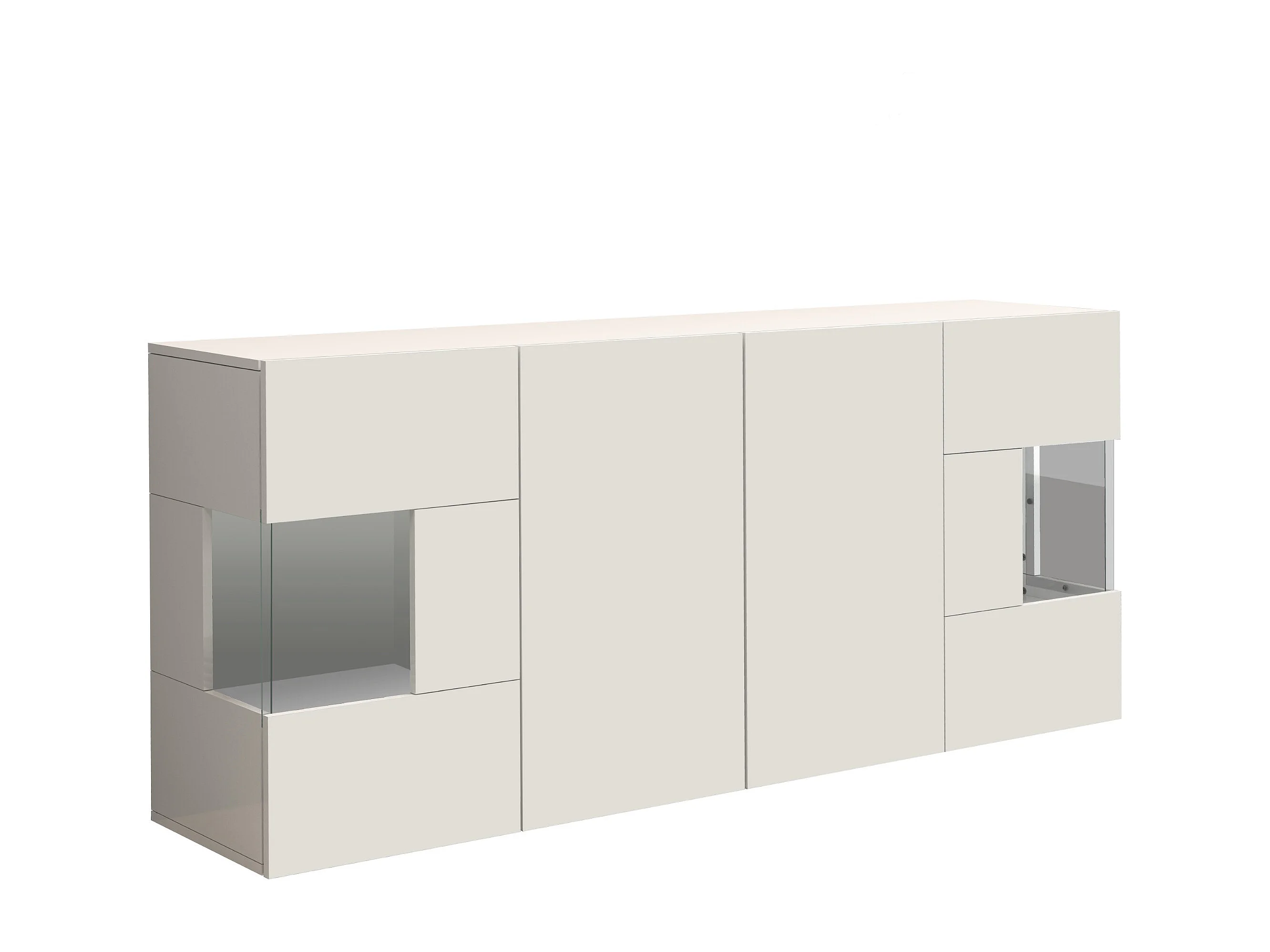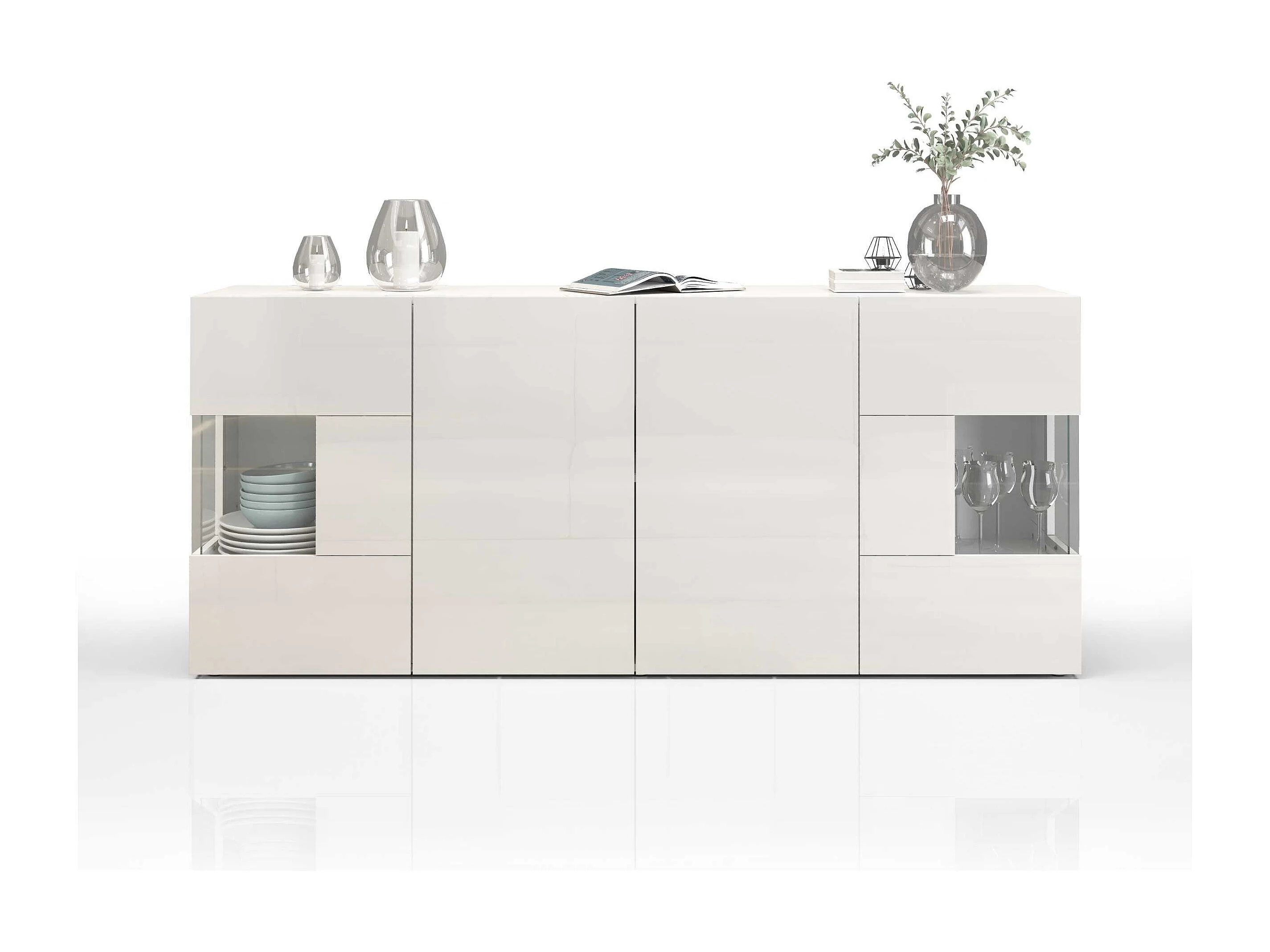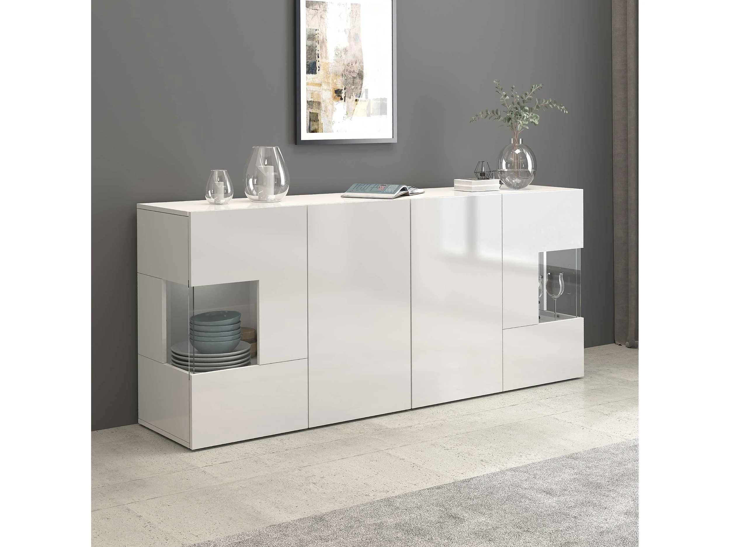 Credenza Egypt a 4 ante con inserti in vetro espositivi bianco lucido 180x40x80 cm