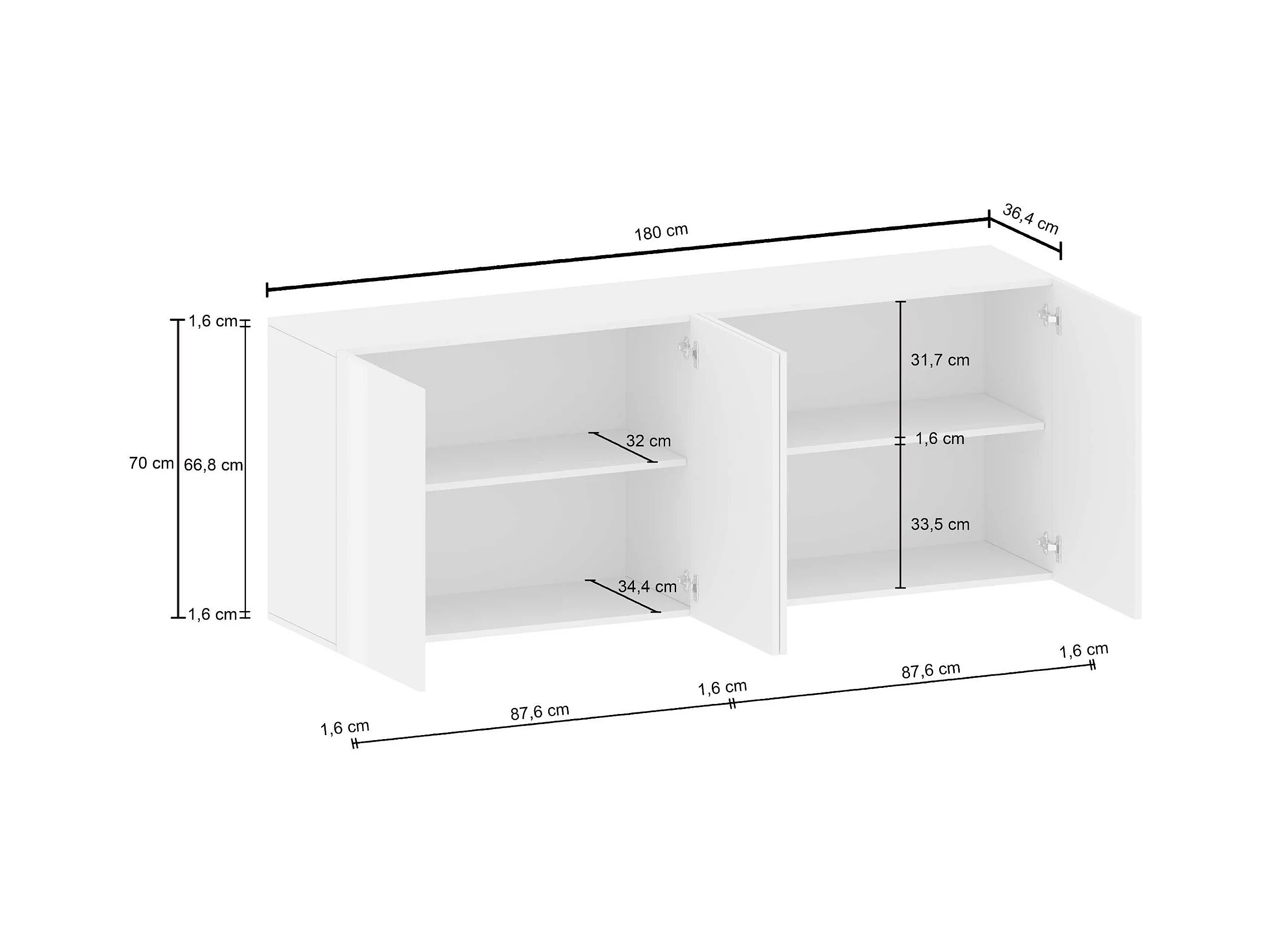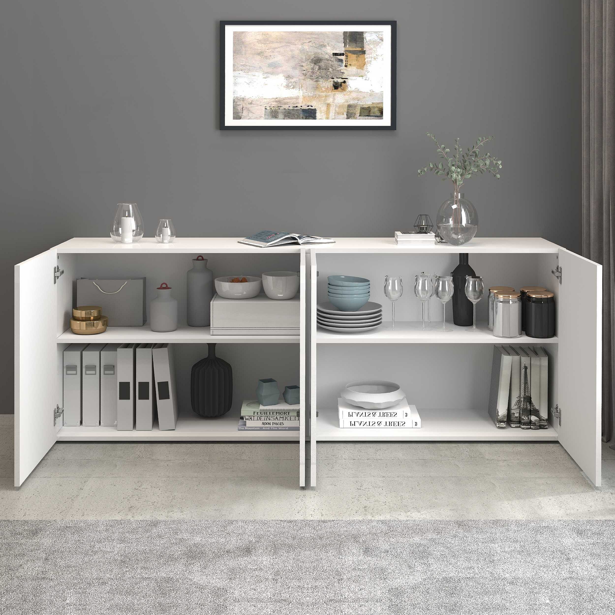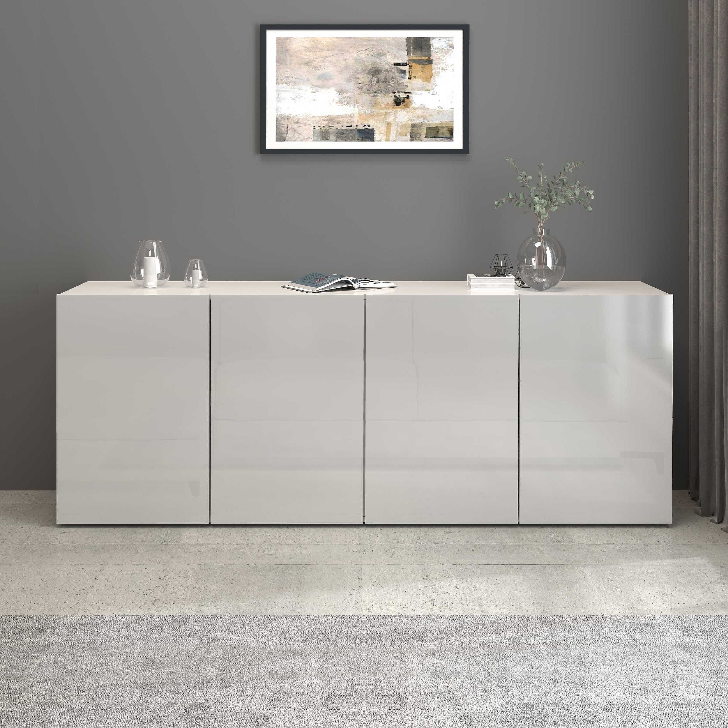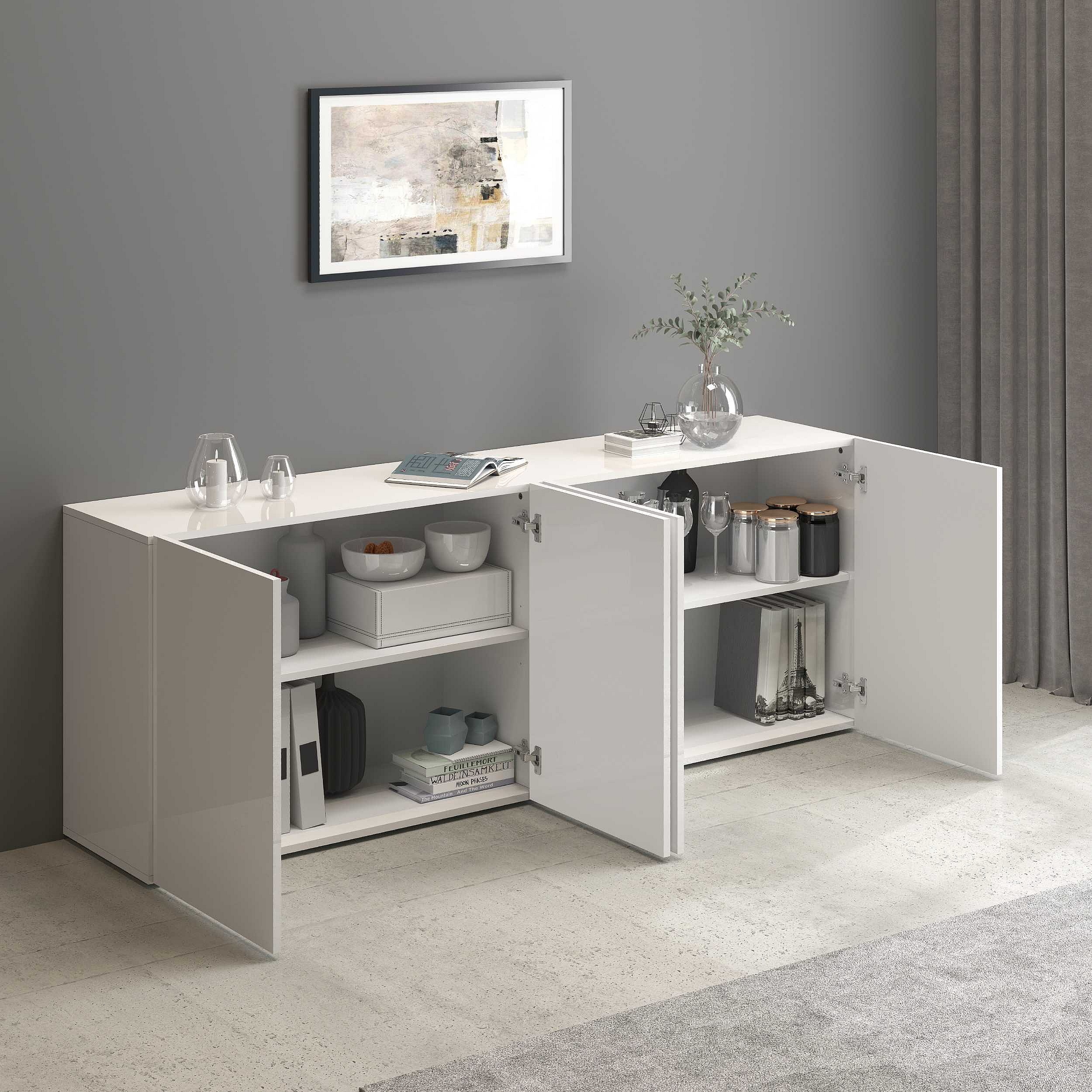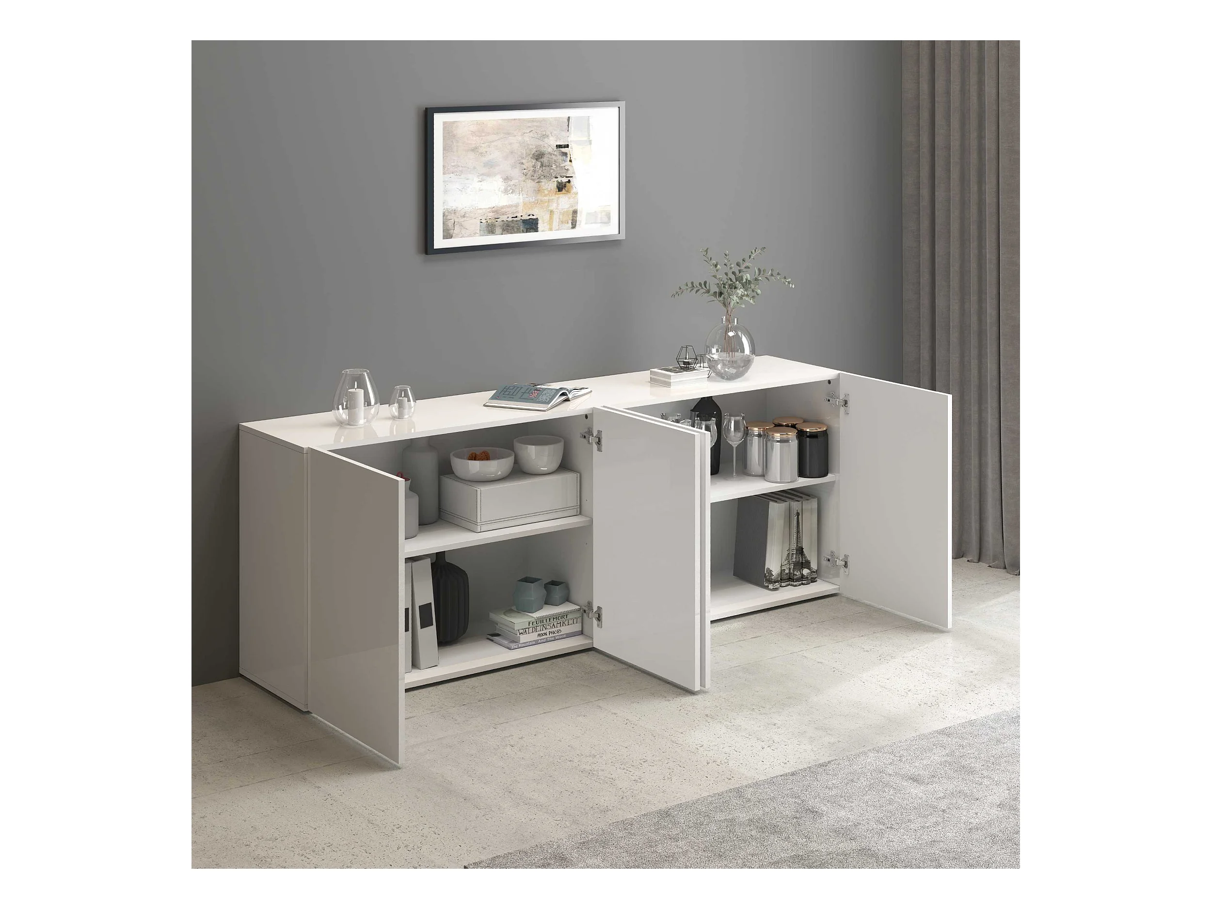Credenza Egypt a 4 ante e 4 vani bianco lucido 180x38x70 cm