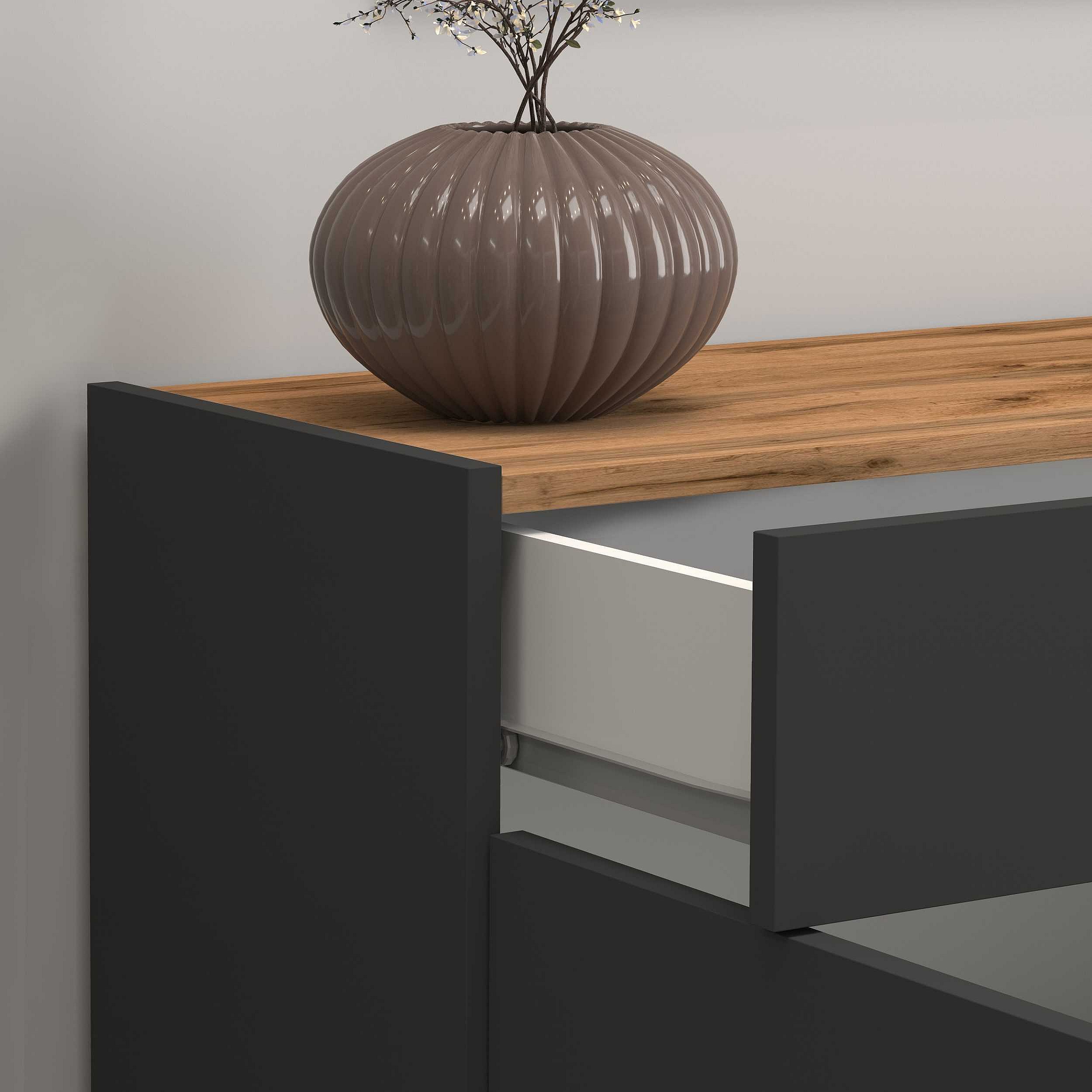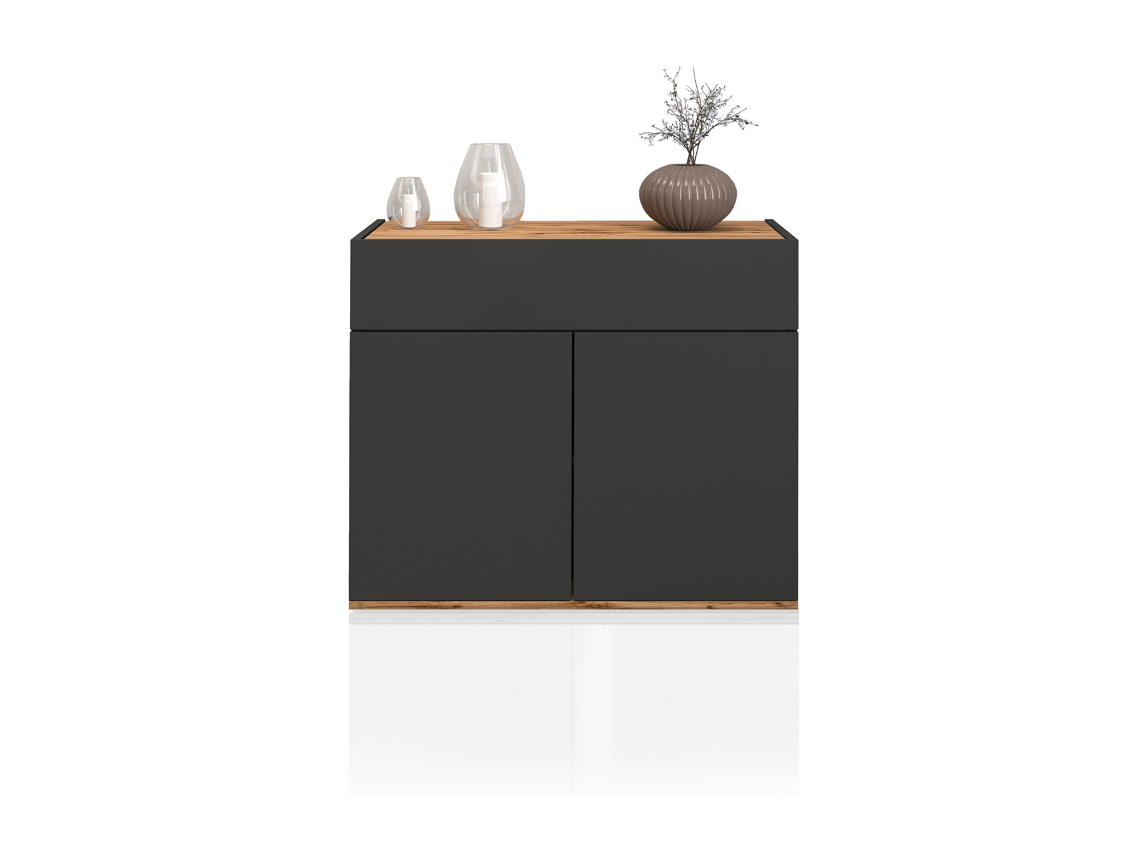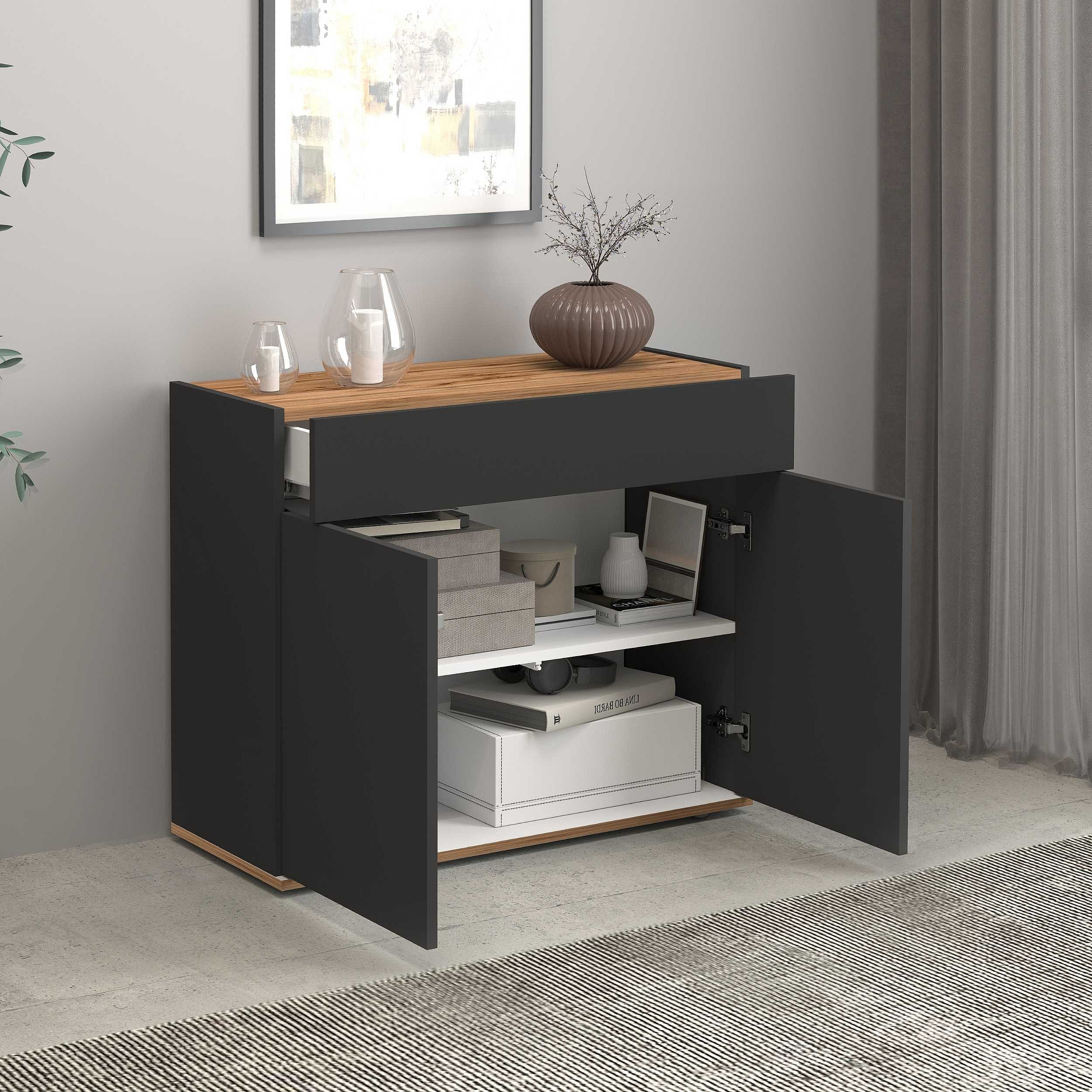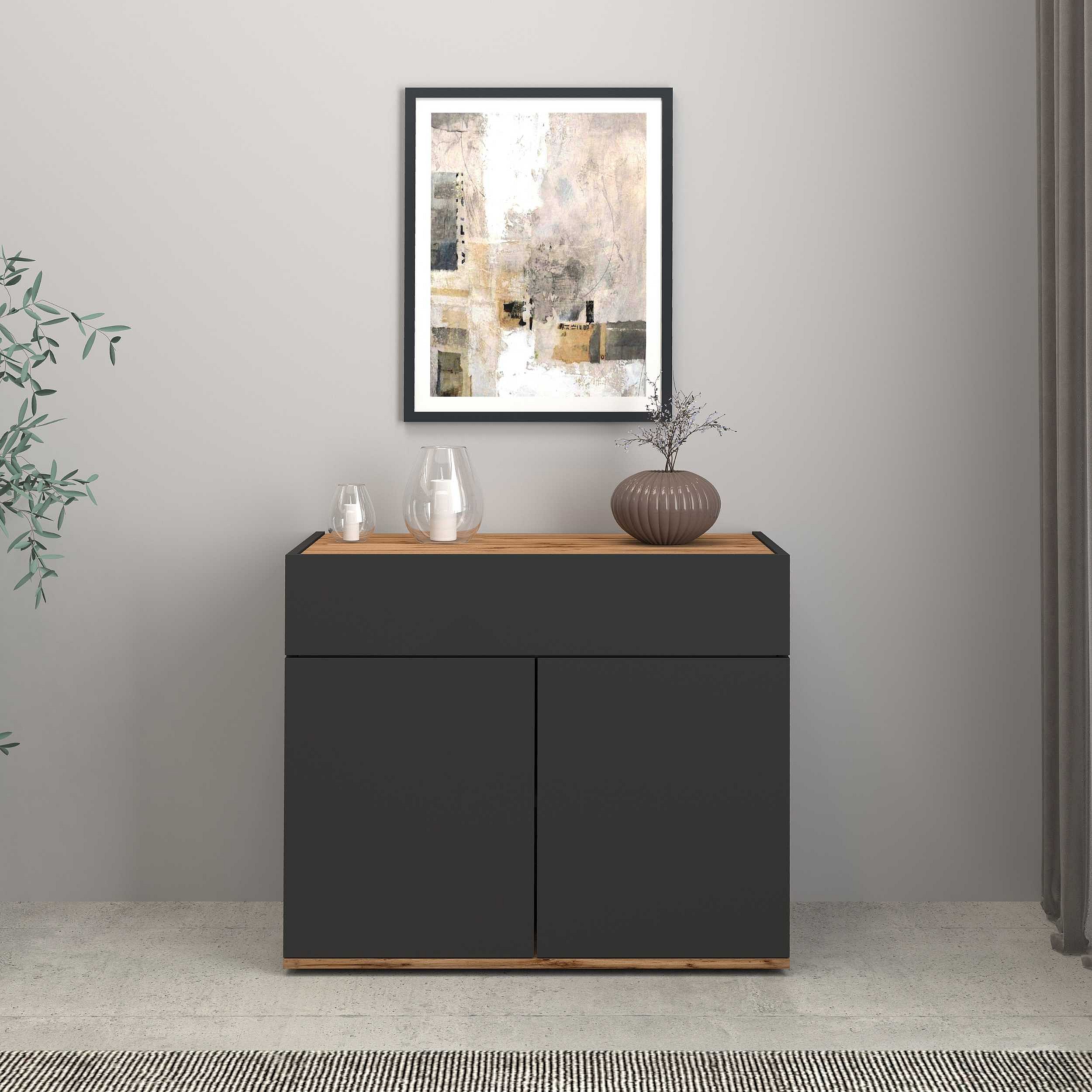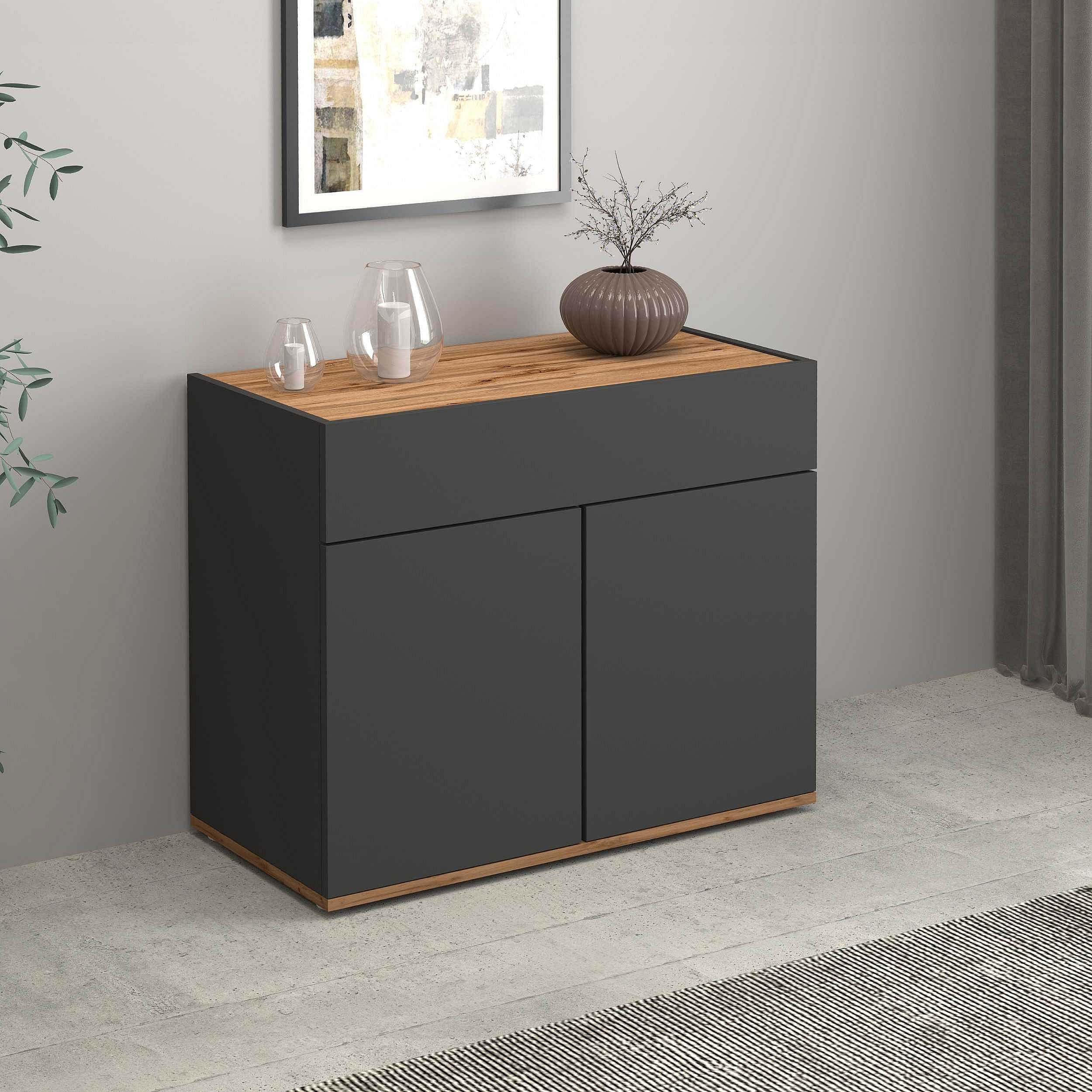 Credenza Garda 2 ante e 1 cassetto antracite opaco e rovere 80,9x35x70 cm