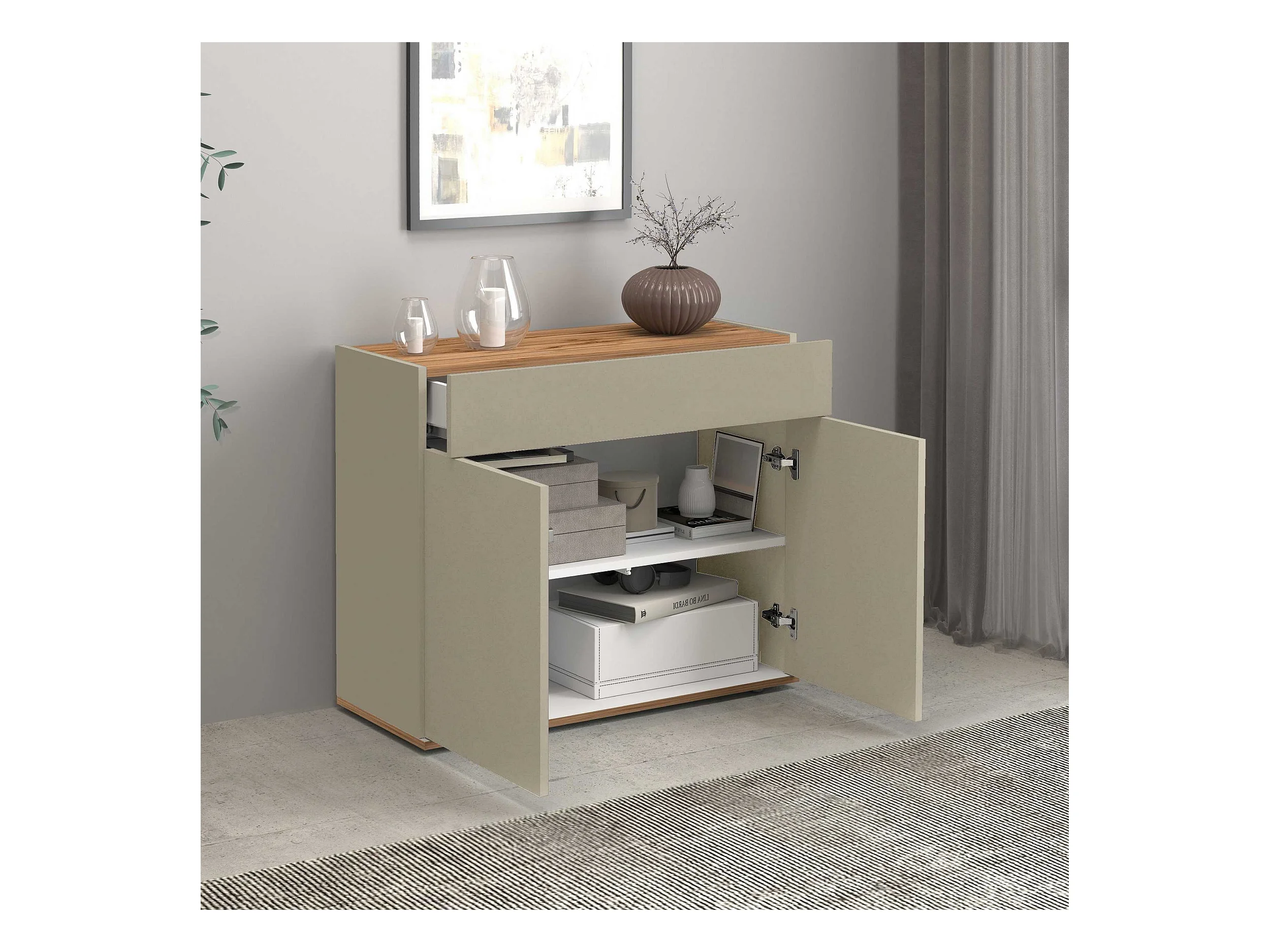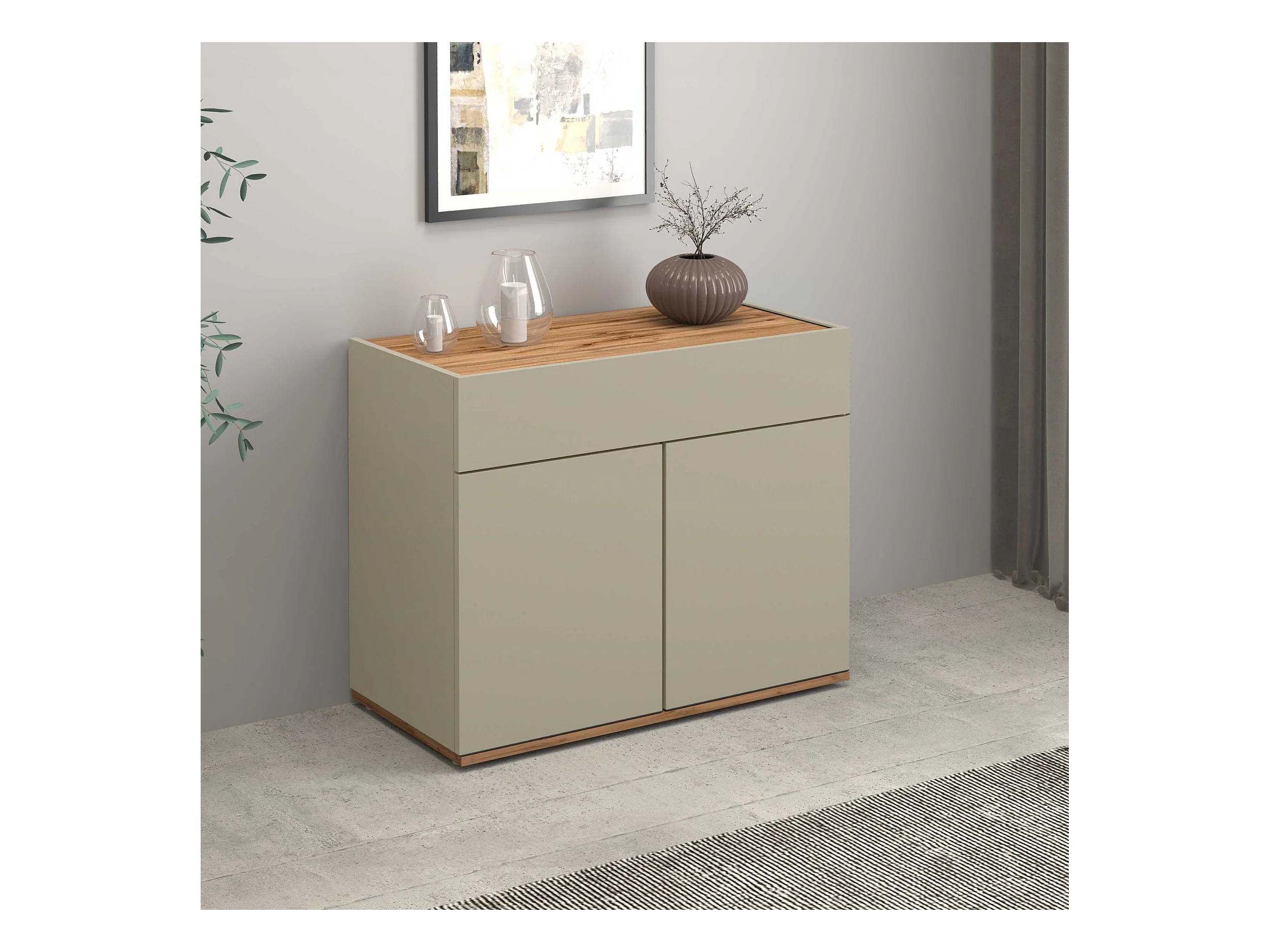 Credenza Garda 2 ante e 1 cassetto tortora opaco e rovere 80,9x35x70 cm