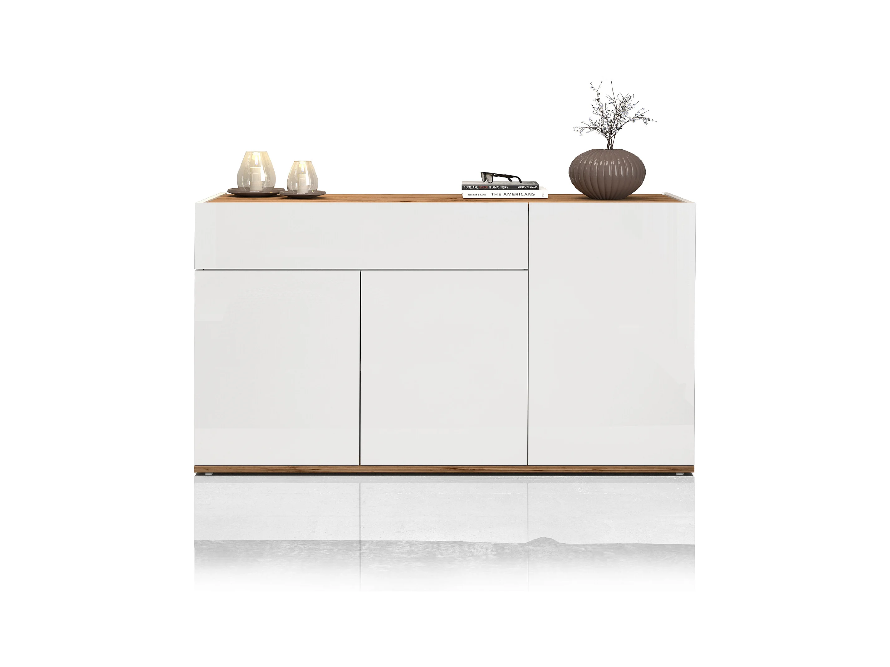 Credenza Garda 3 ante e 1 cassetto bianco lucido e rovere 120,1x35x70 cm