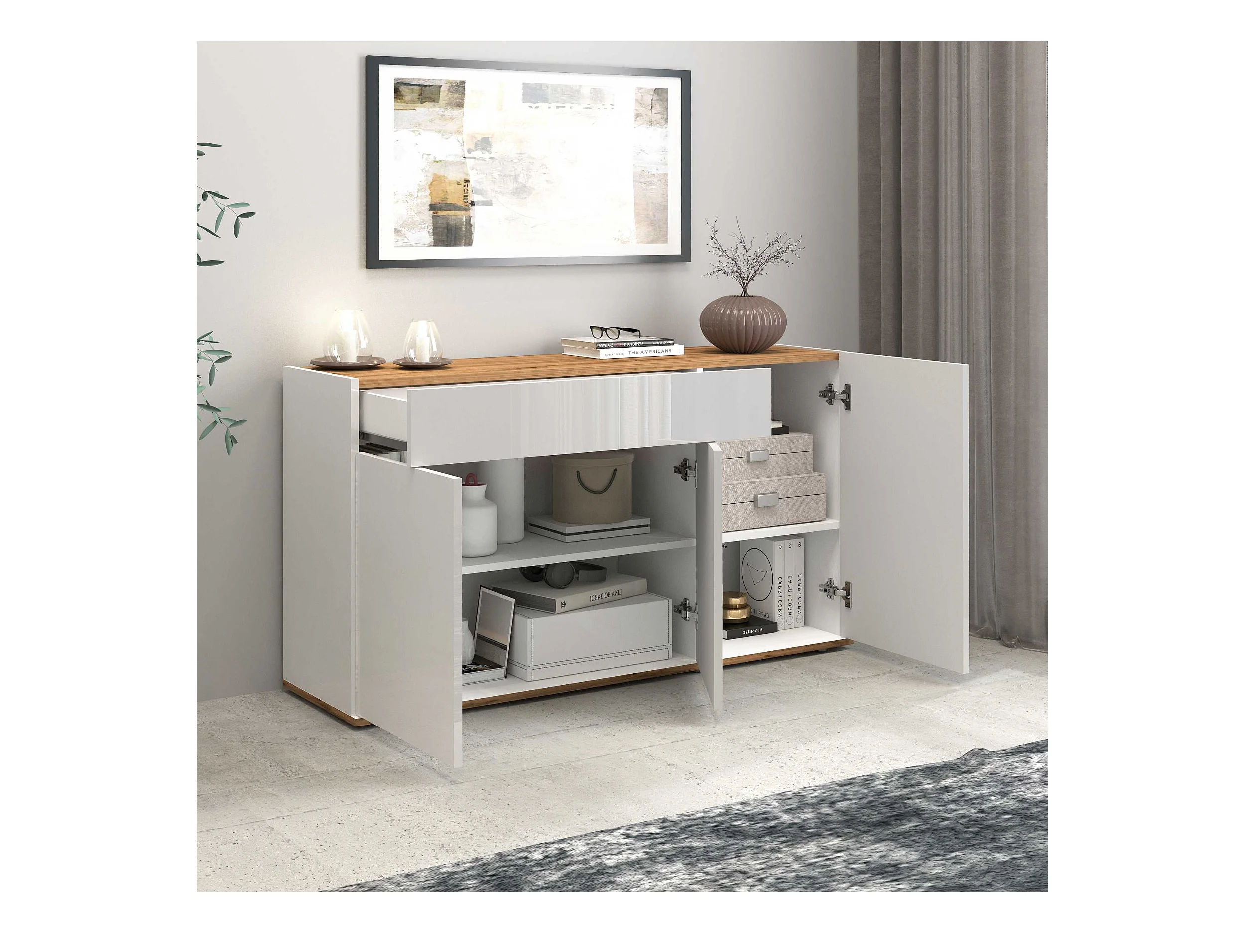Credenza Garda 4 ante e 2 cassetti bianco lucido e rovere 160,1x35x70 cm