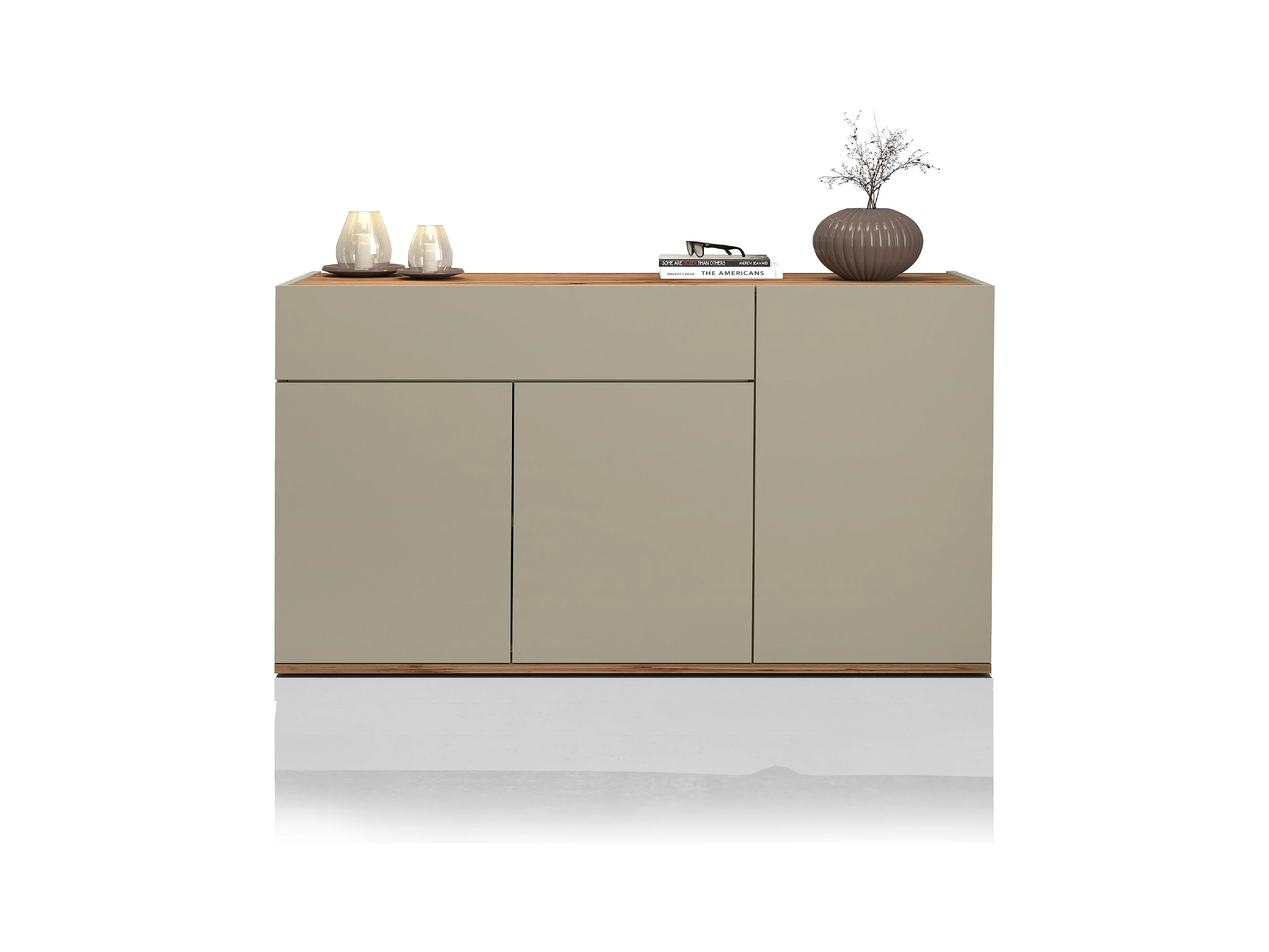 Credenza Chronos 3 ante e 1 vano tortora opaco e rovere 155x40x85 cm