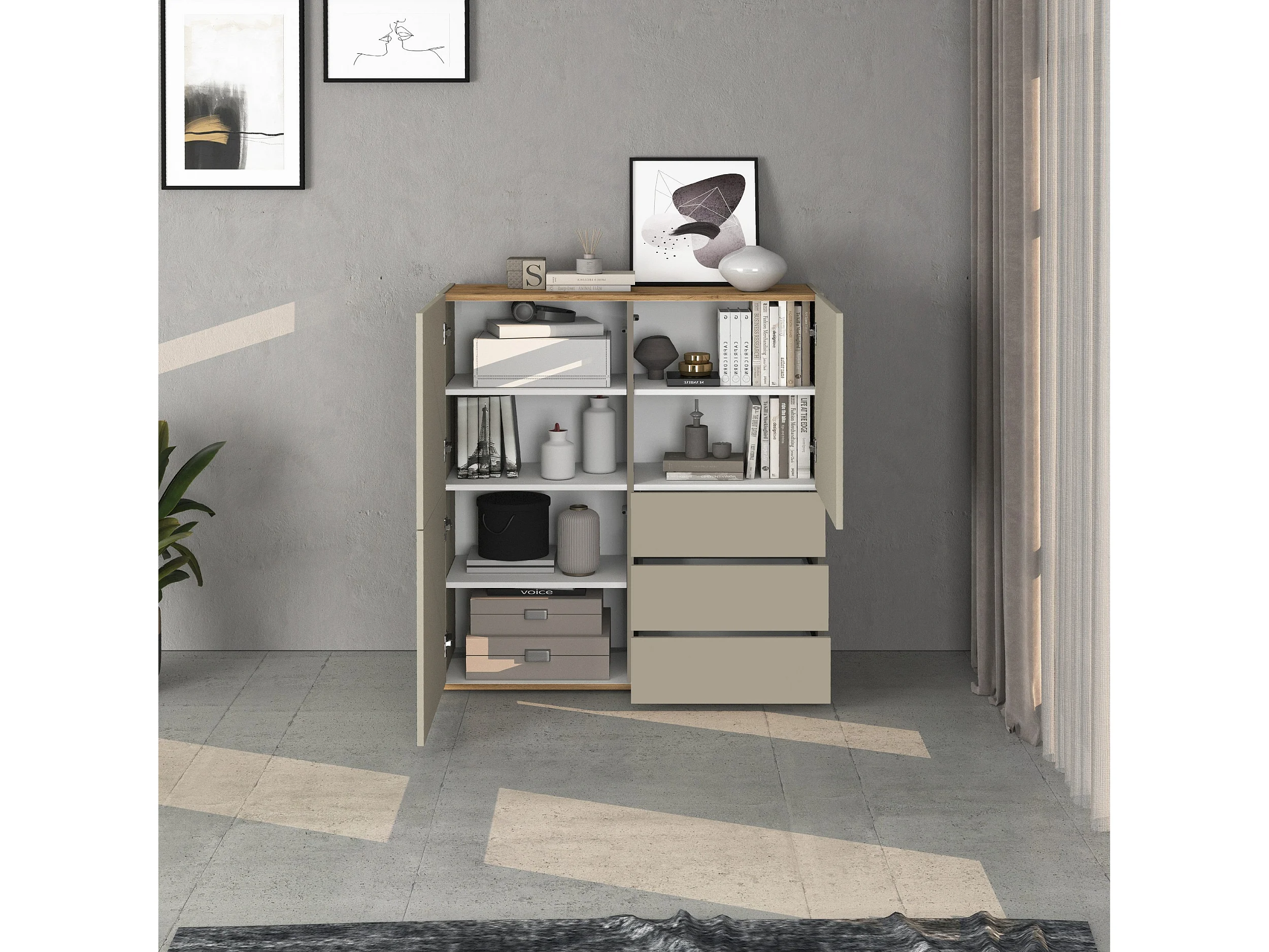 Credenza Garda a 3 ante e 3 cassetti tortora opaco e rovere 102x35x110 cm