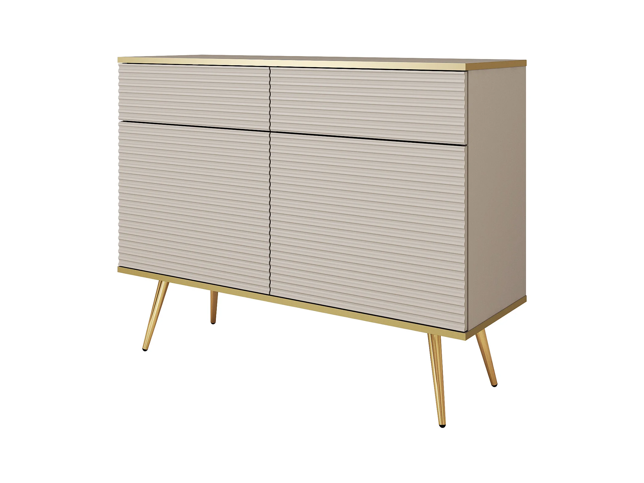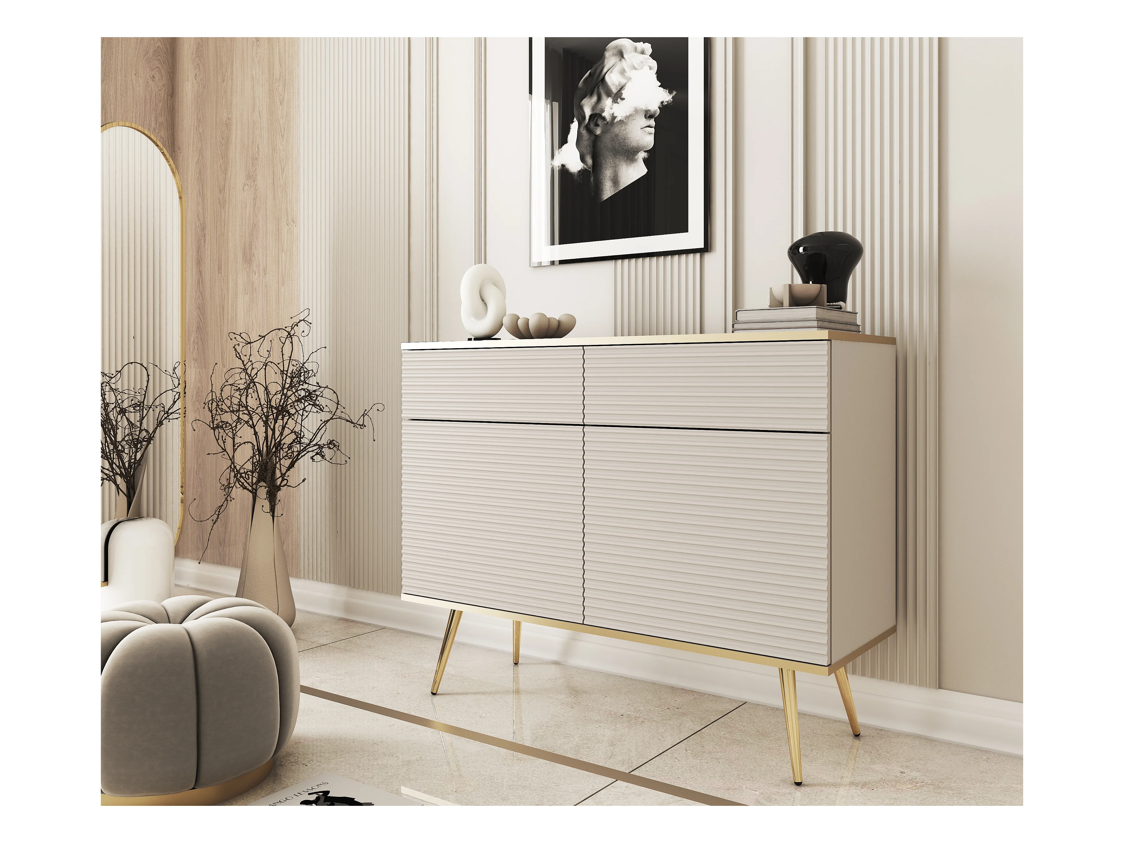 Credenza glamour beige con gambe dorate, 107 x 85 x 39