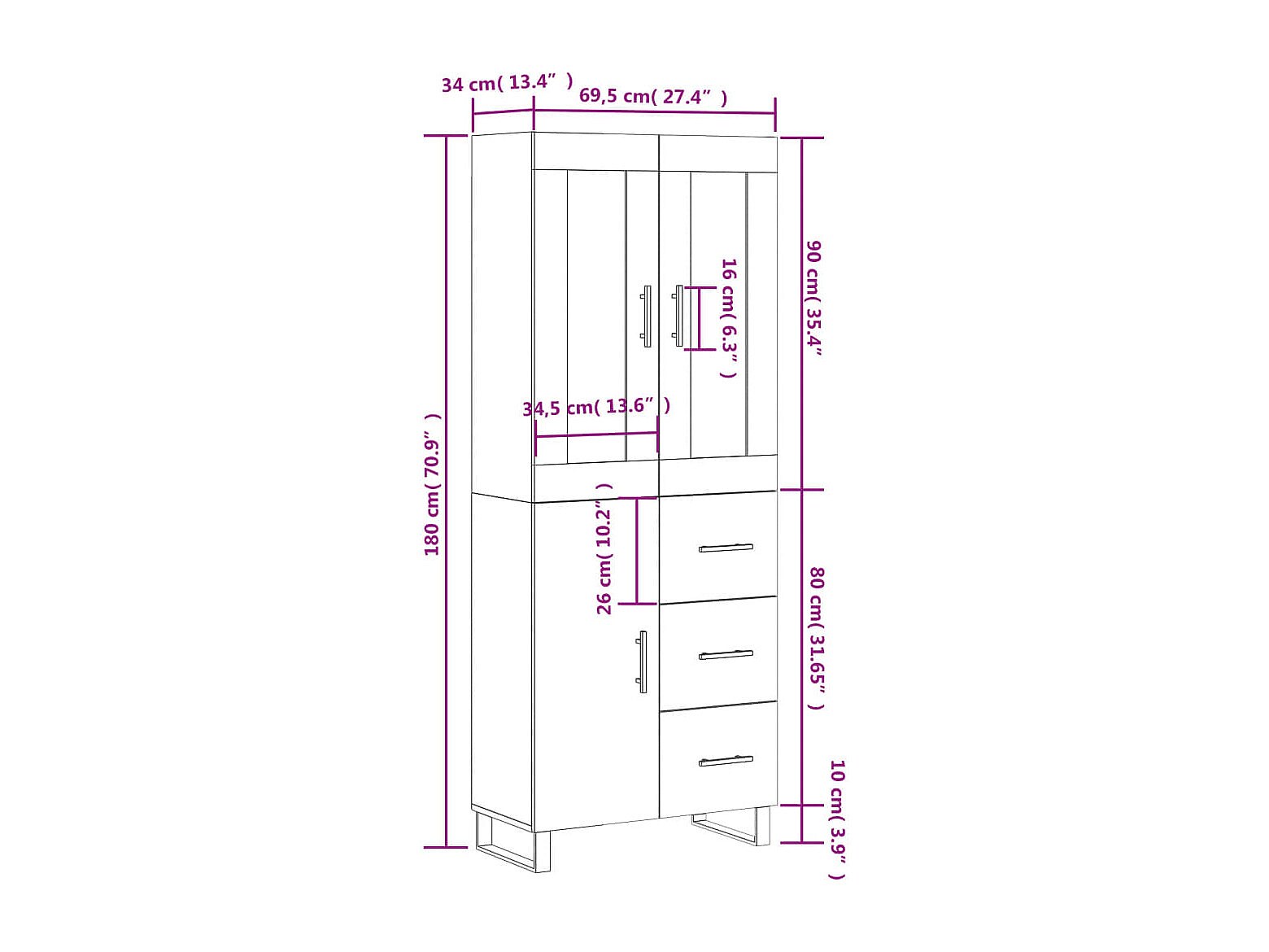 Credenza Grigio Sonoma 69,5x34x180 cm in Legno Multistrato